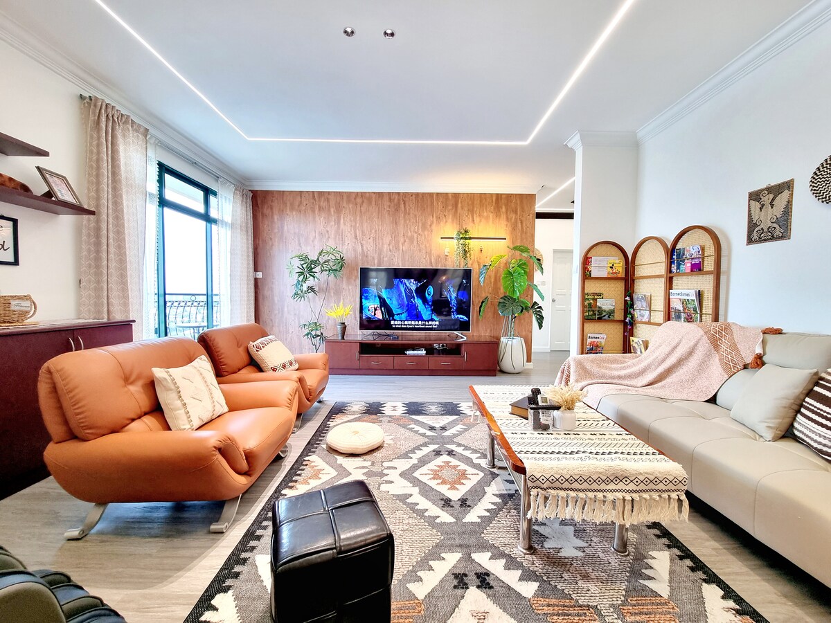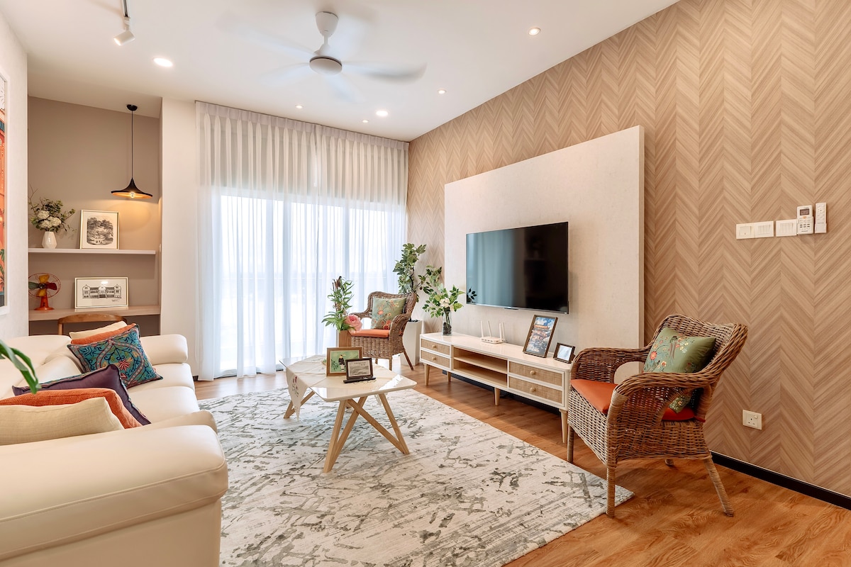 Charming Nyonya-Inspired Stay @ Riverine Sapphire Step into this uniquely styled 3-bedroom apartment that blends modern comfort with vibrant Peranakan (Nyonya) charm. Perfect for up to 7 guests, the space features rattan furniture, heritage mural art, and a bright, cozy living area — ideal for relaxing or snapping Insta-worthy moments.