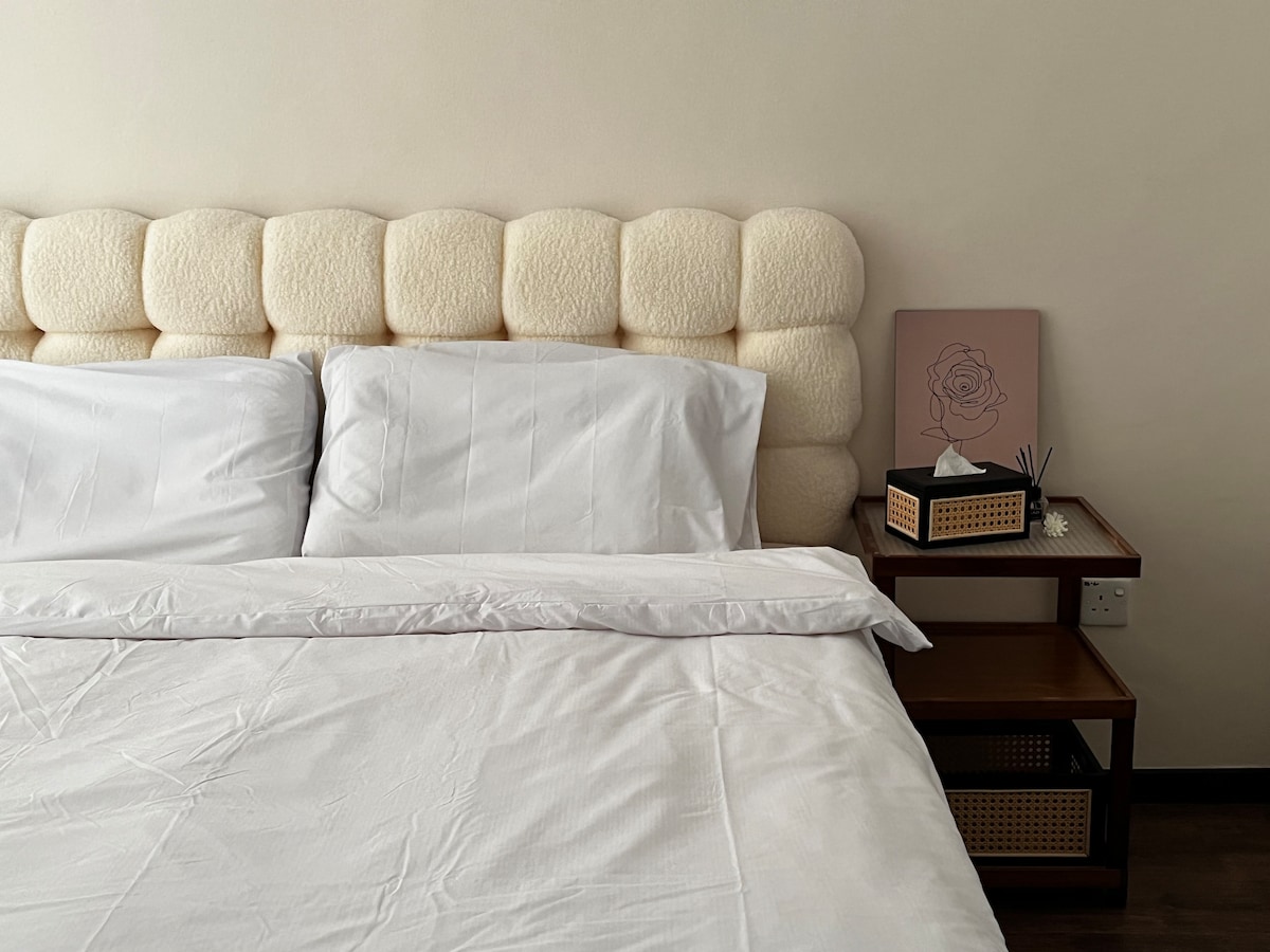 Stylish minimalist deco with a touch of tropics vibes.This spacious newly renovated 4 bedrooms house is located on a quiet street,5 mins drive from the central city.3min walk to (The Coffee Code).Kick back and enjoy the open living and dining area.This house offers you the space and facilities for relaxation and entertainment with friends and families.