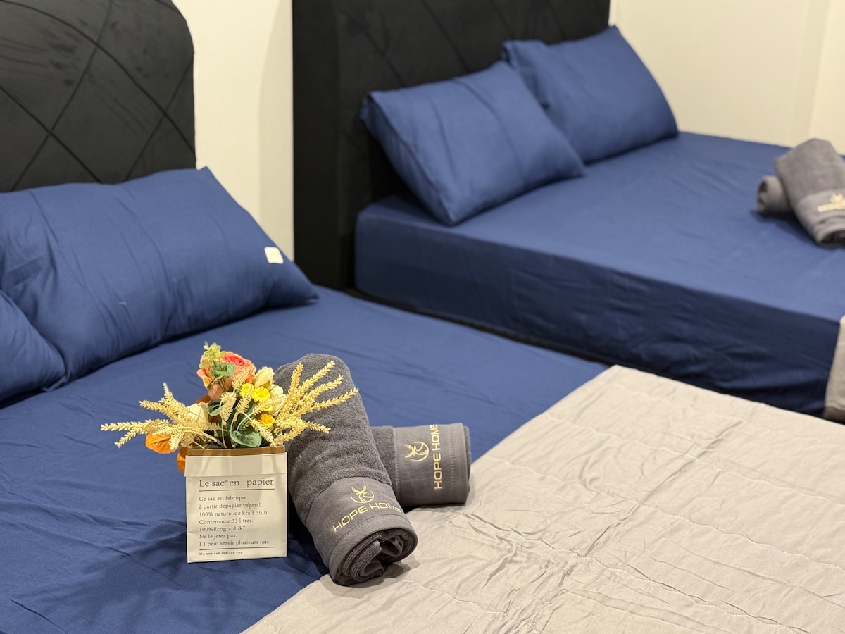 Just a 10-minute walk to nearest Sing Kwong / Farley Supermarket. It is within easy walking distance to local dining options and you can easily find various food at the nearest food stall there. We cater mainly small to a big family with a maximum of up to 14 people. H Homestay is a fully furnished spacious 2-Storey Semi-Detached House with 4 bedrooms and 3 bathrooms. It features 1000Mbps/1Gbps WIFI, FULL ASTRO Channels and also a Secure Car/Motorcycle Parking Area! Contact us for car rental!
