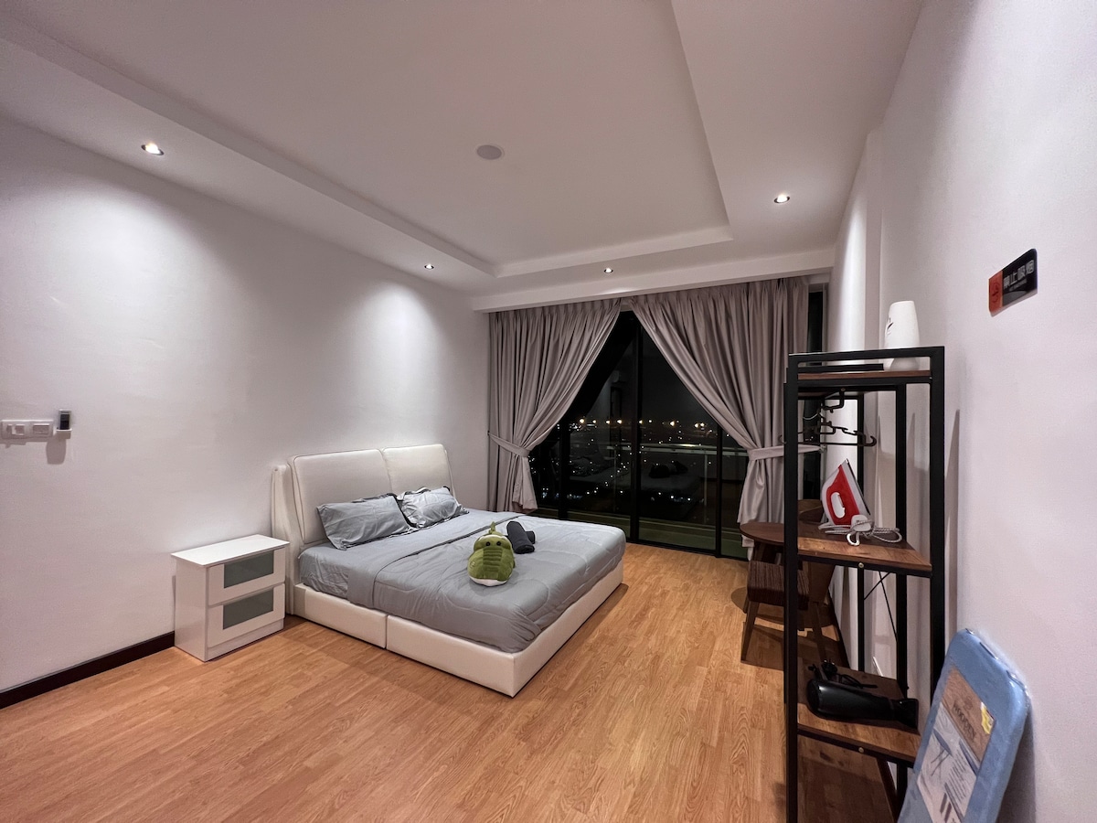 📍 Location Benefits: •10 mins to Vivacity Megamall •15 mins to Kuching City Centre & Waterfront •15 mins to Kuching International Airport •Surrounded by Northbank, TT3 and Emart (additional queen bed sets can be topped up upon request) All branded Dream Master Mattress Room 1 Queen Bed x1 Room 2 Queen Bed x2 Room 3 Queen Bed x2 Room 4 Queen Bed x1 Can request fort-able mattress