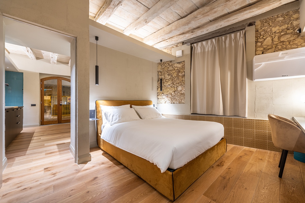 Stay at Antico Sogno, an atmospheric guesthouse in a medieval tower. Located in Bosa's Centro storico, with views of the Temo River and Malaspina Castle. - Private Ensuite Bathroom - Air Conditioning - Queen Sized Bed - Dedicated Workspace - High Speed Wifi - Kitchen Access - Morning Italian Coffee - Coworking/Dining Space - Living Room Common area - Social activities & atmosphere Minutes from beaches, cafes, local cuisine, and live music. Perfect for both couples and solo travelers. 😊