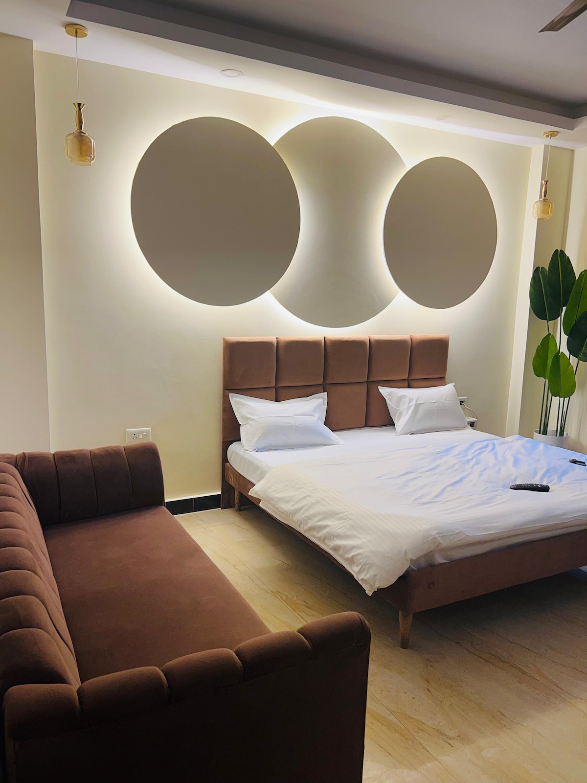 A very hygienic apartment in one of the most posh areas, The studio apartment (Bedroom + Kitchen + Bathroom) is completely independent and is operated by keys. Our studio apartments is furnished with foam mattresses, Smart TV, Refrigerator, Air conditioning. There is a fully equipped kitchen with stove, chimney, microwave, with all cooking and eating utensils, where you can cook your own meals as per your requirements. The availability of small stores for everyday needs is easily accessible.