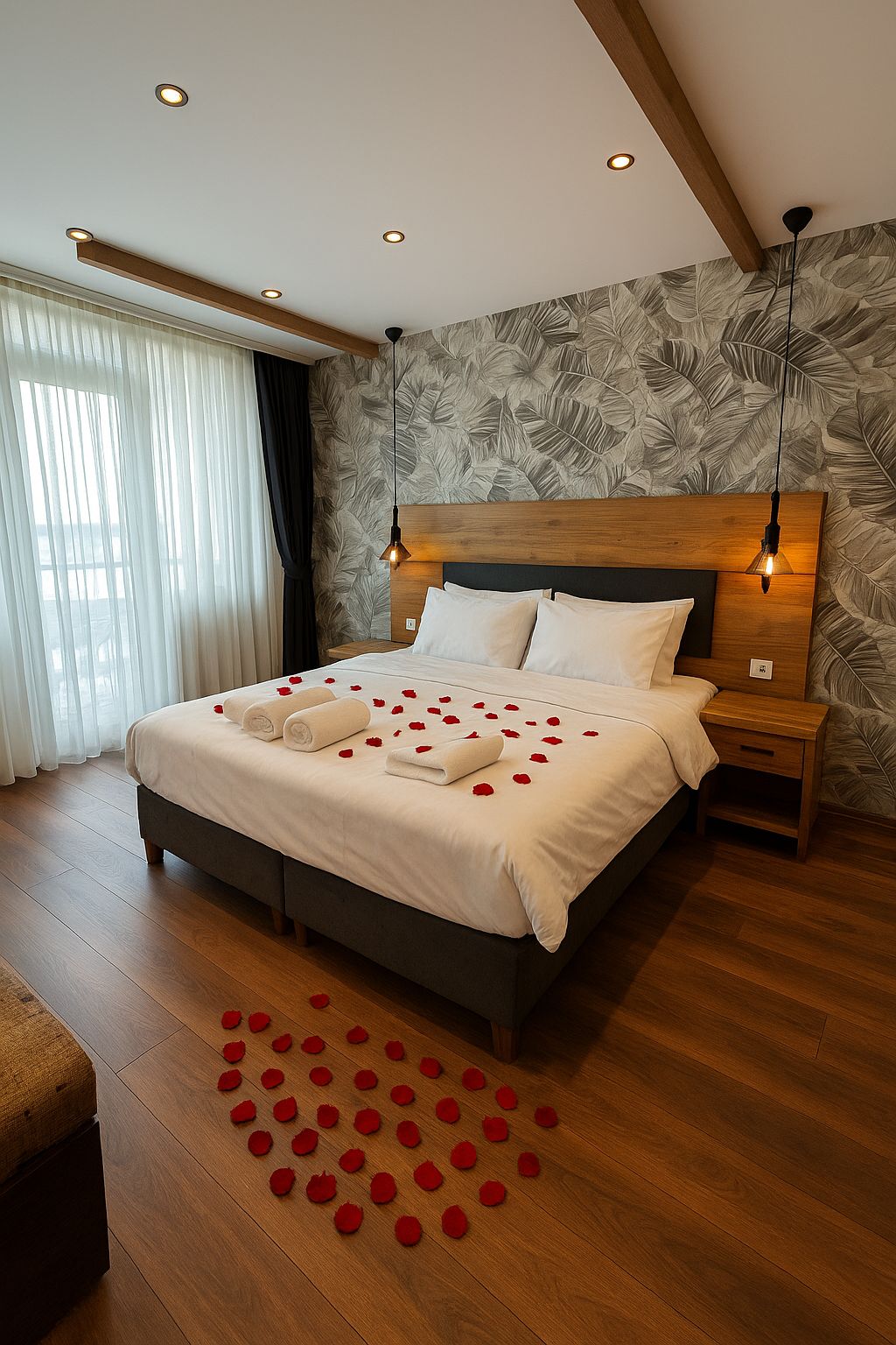Özel Tasarım Süit • Balkon Jakuzili Deluxe Oda: Mahremiyet odaklı, size özel balkon jakuzisi ile konforu birleştiren oda tipi. Türünün tek örneği olan bu yerde konaklayarak sessiz ve sakin ortamda konaklamış olacaksınız.