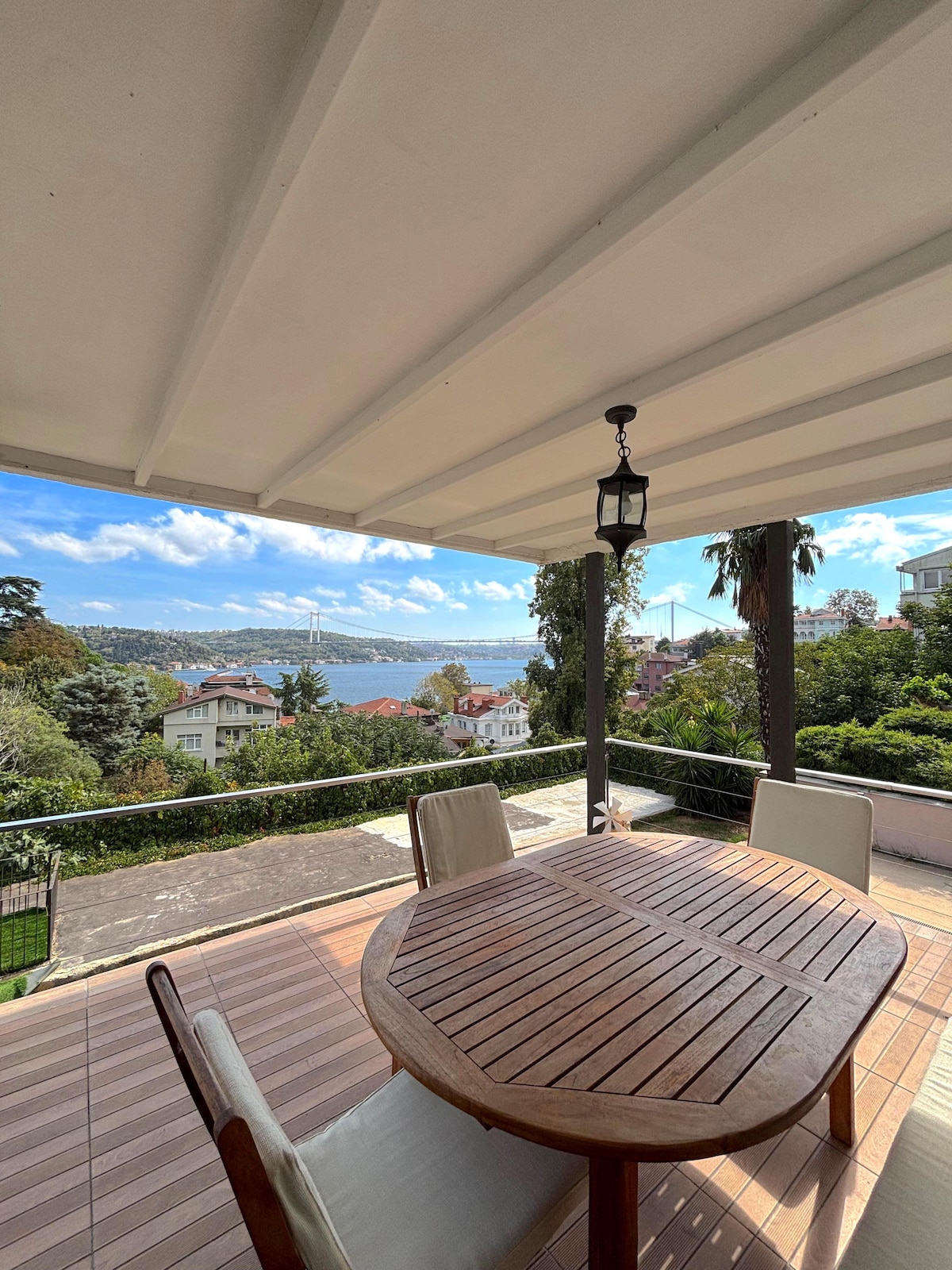 This villa enjoys a spacious living room with a cozy fireplace, three terraces with incredible water views, large private outdoor garden, charming hillside views of Büyükdere village, and 3 bedrooms with bathrooms ensuite, and one bedroom on the entry floor next to the half-bath. Artfully appointed with a mix of traditional Turkish décor coupled with a rustic charm. Idyllic, luxurious, and ideal for small events such as dinner parties or retreats.