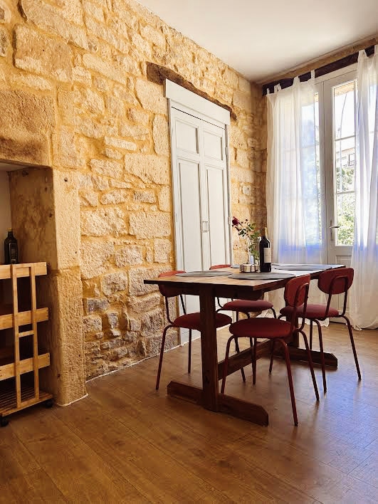 Situé au coeur du centre historique de Sarlat dans la célèbre rue Montaigne, dans une maison datant du Moyen Âge rénovée en 2020 en valorisant au maximum son patrimoine (pierre, parquets), l'appartement de 64 m2 propose une terrasse et une vue exceptionnelle sur la Cathédrale St Sacerdos et les jardins des Enfeux. A noter : pour les groupes ou les grandes familles, il est également possible de louer la maison entière, jusqu'à 14 personnes ("La Demeure de Bacchus", annonce Airbnb n°51800236).