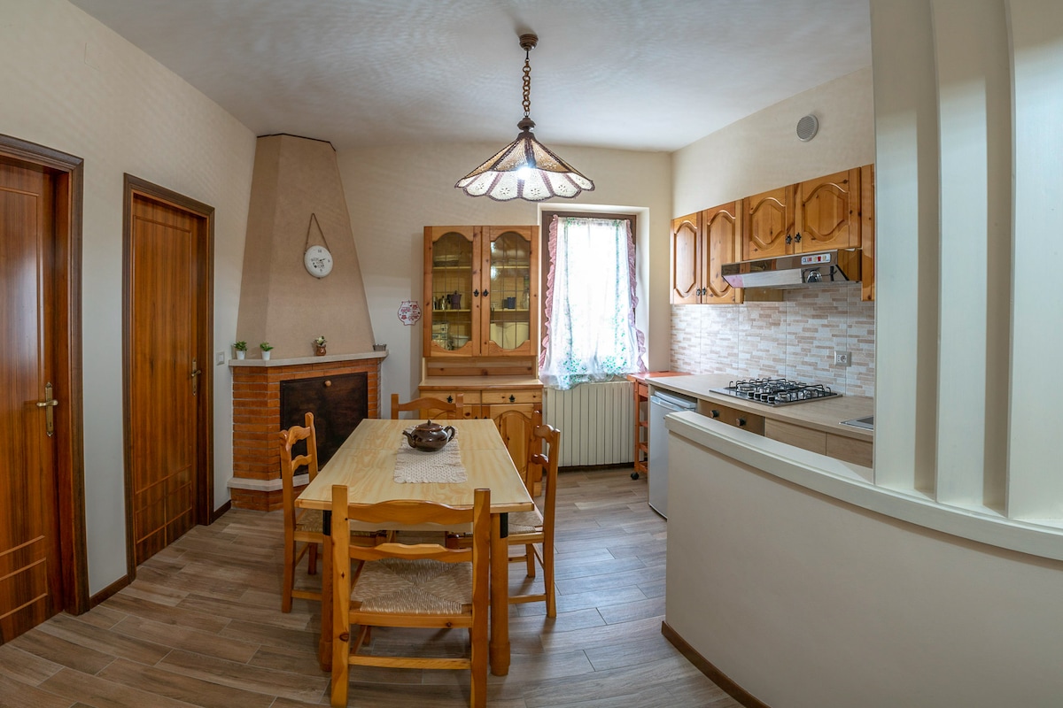 In the villa, which has been recently restored in the style of an old country house dating back to the beginning of the nineteenth century, comprises two identical large apartments (170 sq. meters wide), located at ground and first floor. In each flat all modern facilities are available, and the spacious dining room (85 sq. metres wide) from where you have direct access to the garden (ground floor) or a wonderful view of the village, is ideal for big groups or large families (up to 10 people) wanting to experience the beauties of this oasis of quietness.