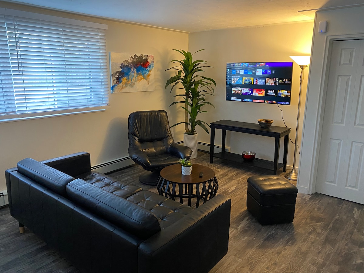 Located in the heart of downtown Lexington we are minutes away from all the local restaurants, bars and famous Lexington Harbor. Each bedroom has a 42 inch TV mounted on the wall to enjoy a movie before bed. Living Room boasts a 70 inch TV with DVD player. Each TV is a smart TV and there is cable installed in the unit. Bedroom #1 1 - Queen Bed 1 - Twin Ben 1- 42 inch TV Bedroom #2 1 - Queen Bed 1 - 42 inch TV