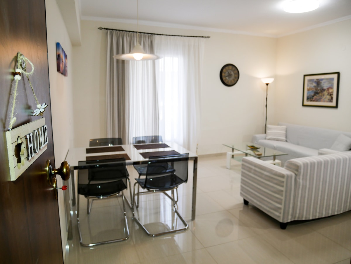 Centrally located attic apartment in Corfu. 15' walk to the airport, 15' to the city center, 2' to the green bus station and city bus. Fully equipped kitchen, spacious living room, smart TV, dedicated workspace, fast and free wifi, small balcony and AC in every room. Ergonomic mattresses for comfortable speep, storage space and free parking. You can self check-in with the smart locks. Everything you need for a comfortable and memorable stay. Perfect for couples, families or groups of friends.