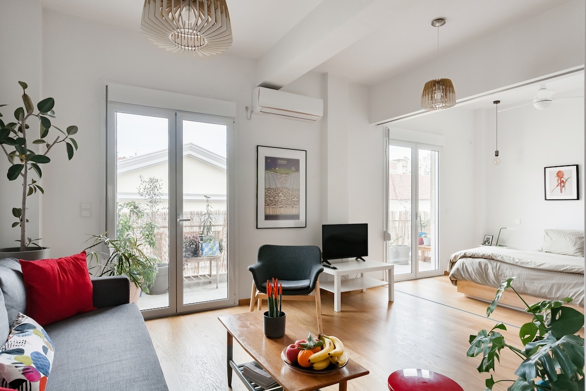 Graffiti Studio 30m2 on first floor and ready to welcome 2 guests. Dafni area has a Metro station, many bus lines. The studio is fully equipped and stylish. Located in a safe family area, next to a square with cafes, supermarkets, and restaurants. It is a one-minute walk to the Dafni metro stop (red line) only 4 stops to the Acropolis, five stops to Syntagma, and one stop to a big shopping Mall. The studio is vibrant and has a great vibe! Be our guest.