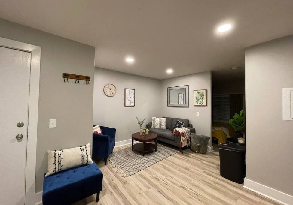 Welcome to your cozy home away from home—perfect for families, business travelers, and weekend getaways. 🛋️ Relax in Comfort Unwind on the spacious sectional. Perfect for movie nights, conversation, or kicking back. 💻 Work-Friendly Setup Stay productive with fast WiFi. 🍳 Fully Equipped Kitchen Enjoy a clean, functional kitchen with everything you need to cook and enjoy your morning coffee. 🛏️ Rest Easy Comfortable beds and a quiet area ensure a great night’s sleep. 🐕🦺 Pets Welcome!