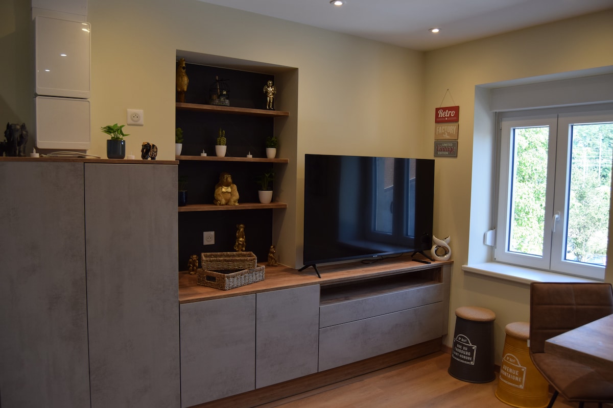 Bienvenue à la tanière du loup, logement 1 Appartement de 50 m2 rénové en 2020, meublé et équipé avec tout le nécessaire pour que votre séjour se passe comme à la maison. Située dans un endroit calme et reposant. L'accès est indépendant avec une terrasse et parking privé (le parking à une vidéo surveillance) Cuisine tout équipée Salon : canapé convertible 140/200, TV orange et Netflix inclus Chambre 1 double lit 180/190 Salle de bain équipée: sèche cheveux, serviettes, ect..