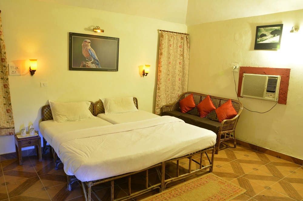 Enjoy a refreshing stay with a swimming pool and seating area at the resort. Free parking ensures vehicle safety, while regular jungle safaris offer an adventurous experience. Power backup adds to your comfort. Choose from air-conditioned Deluxe Rooms (100 sq. ft) or Executive Rooms (120 sq. ft) both equipped with mineral water, a chair, clothes rack, electric kettle, iron with ironing board, and blackout curtains. Hot/cold water, showers, towels, and daily housekeeping ensure a cozy, clean stay