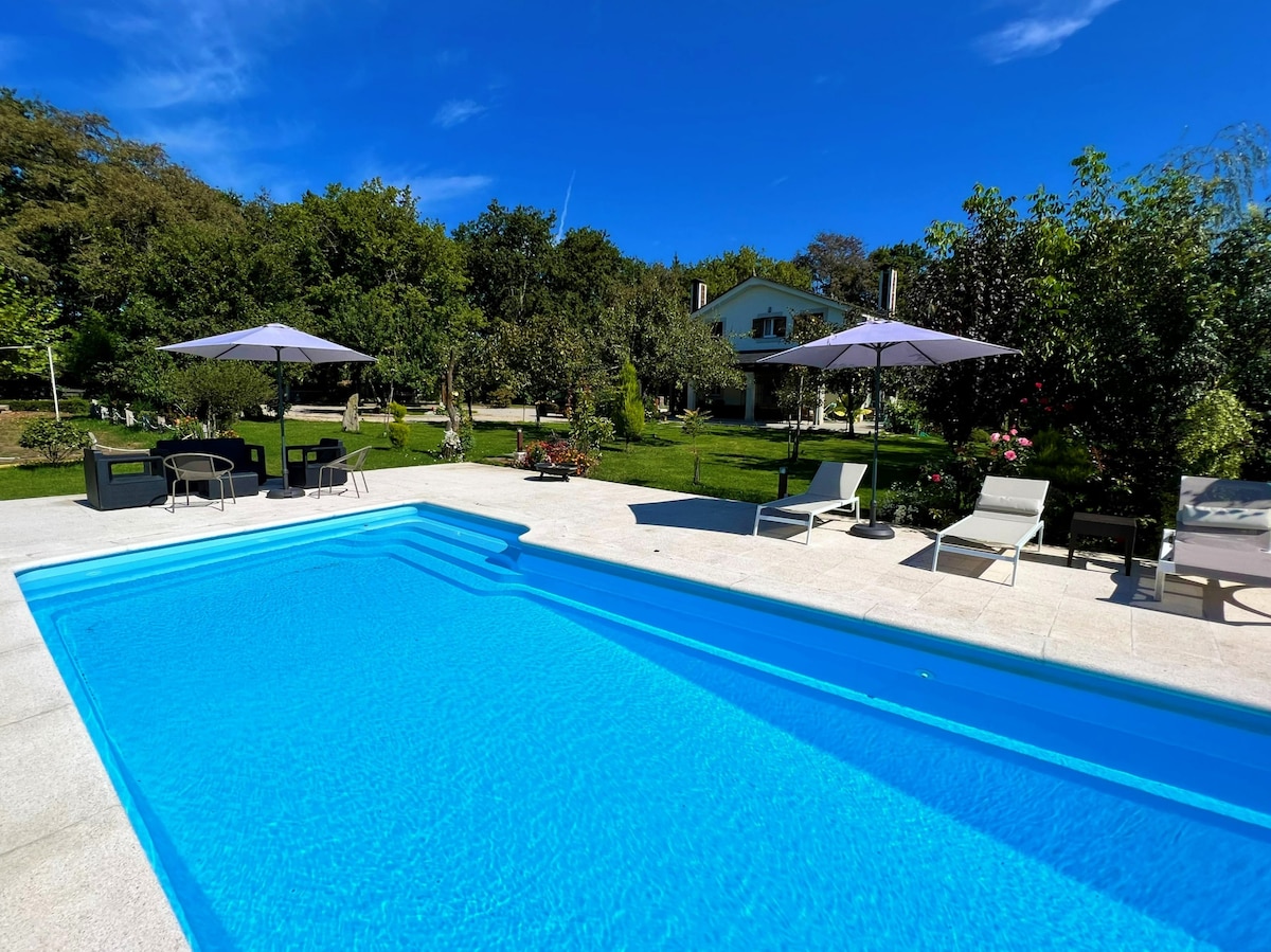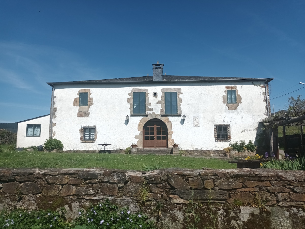 Se trata de una casa de planta baja situada en una parcela de 9.000 m2 completamente cerrada. Dispone de piscina privada los meses de verano. Está situada en una zona de campo muy tranquila a 28 km. de Lugo (unos 20 minutos en coche) y a escasos 9 km. de Portomarín, preciosa localidad por donde pasa el Camino de Santiago. Muy bien situada para conocer gran parte de Galicia, estando a 60-80 minutos de A Coruña, Ourense, Santiago, costa de Lugo (playa de Las Catedrales)...