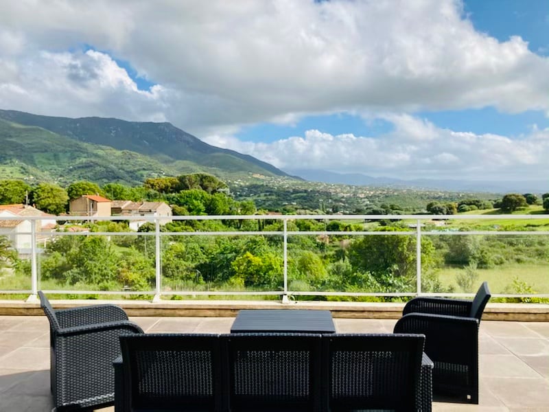 Joli studio climatisé à 15 minutes d'Ajaccio. Au premier étage de la villa des propriétaires. Idéalement placé, à 20 minutes du port et de l'aéroport, à 10 kms de la plage, tout en étant au calme à la campagne. Centré sur la côte Ouest, au carrefour des routes desservant les sites remarquables, calanques de Piana au Nord, Bonifaccio au Sud, Corté... L'appartement est neuf et bien équipé et possède une terrasse ombragée équipée d'une table et d'un salon de jardin.