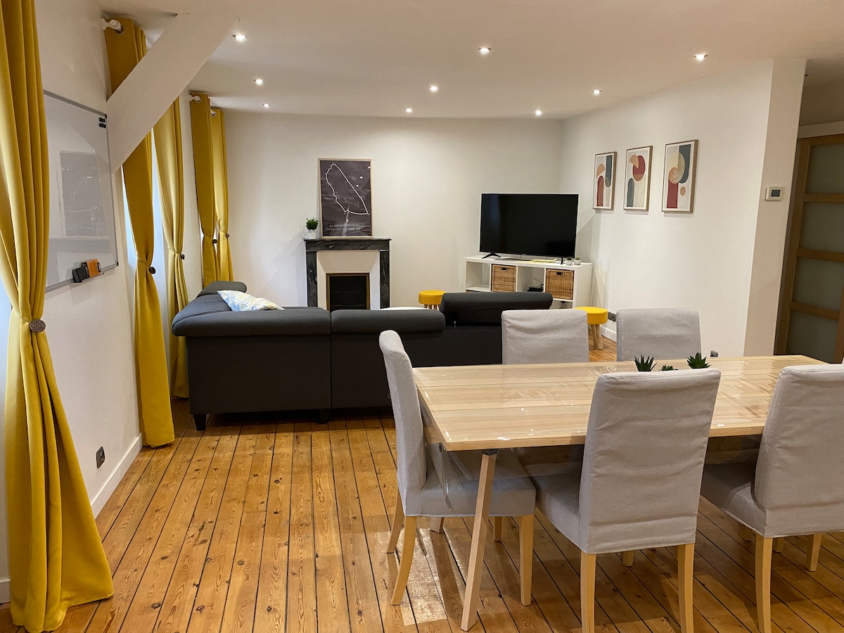 Grand appartement de charme au cœur d’Alençon Spacieux 110 m² en plein centre d’Alençon, à deux pas des commerces (boucher, primeur, boulangerie…). L’appartement dispose de 3 chambres, 2 salles de bain, et de tout le nécessaire pour un séjour confortable, en famille ou entre amis. Lumineux, chaleureux et parfaitement équipé, il offre un cadre idéal pour découvrir la Cité des Ducs à pied ou à vélo. Literie de qualité, cuisine équipée, Wi-Fi rapide : tout est pensé pour votre confort.