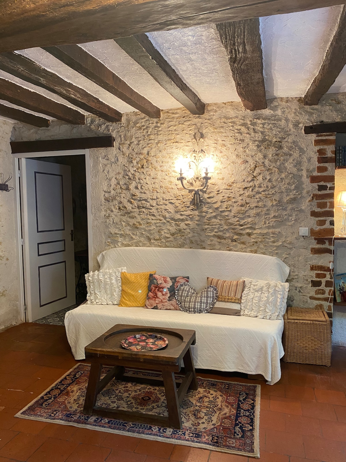 Dans la partie gauche de notre fermette à la campagne sur un grand terrain arboré, logement comprenant un salon, une cuisine avec table en rez de chaussée. Chambre 1 : un lit deux places et un lit 1 place en mezzanine. A l'étage : 1 autre chambre avec 2 lits simples, une salle de bain. Idéal pour un séjour romantique au calme à la campagne. A partir d'avril, jacuzzi partagé avec les hôtes de la caravane en accès libre. Voir aussi mon 2ème gîte caravane vintage. Venez vite vous ressourcer !