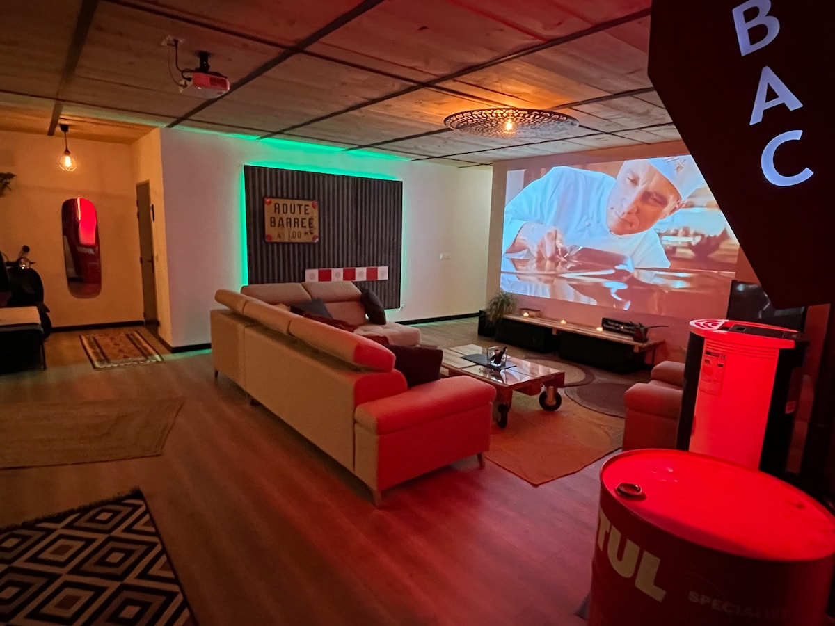 Un grand loft de 200m2 pour vous retrouver en famille ou entre amis. Situation idéale en centre ville, au pied du Vieux Mans. Très grand espace de vie avec cuisine équipée ouverte sur le salon/salle à manger. 3 chambres doubles et un dortoir avec 4 lits simples. Literie de grande qualité, draps et serviettes compris dans la location. 3 salles de bains et 3 WC Un bureau Vidéo projecteur Babyfoot 1 parking