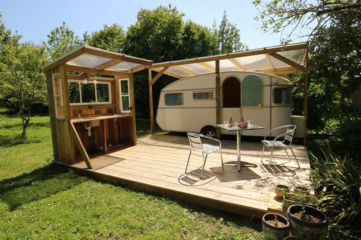 Idéale pour un séjour romantique, installée dans un écrin de verdure au bord du petit étang, cette caravane vintage de 1972, saura vous séduire avec sa vue panoramique, sa terrasse privée équipée d'une cuisine d'été, sa douche et toilettes intégrés. Equipée tout confort, elle est installée sur un terrain arboré de 2 hectares auprès de ma fermette. Nouveauté 2026 : labyrinthe. Venez découvrir nos animaux et nos espaces extérieurs. Jacuzzi partagé à l'abri des regards dans le jardin d'hiver.