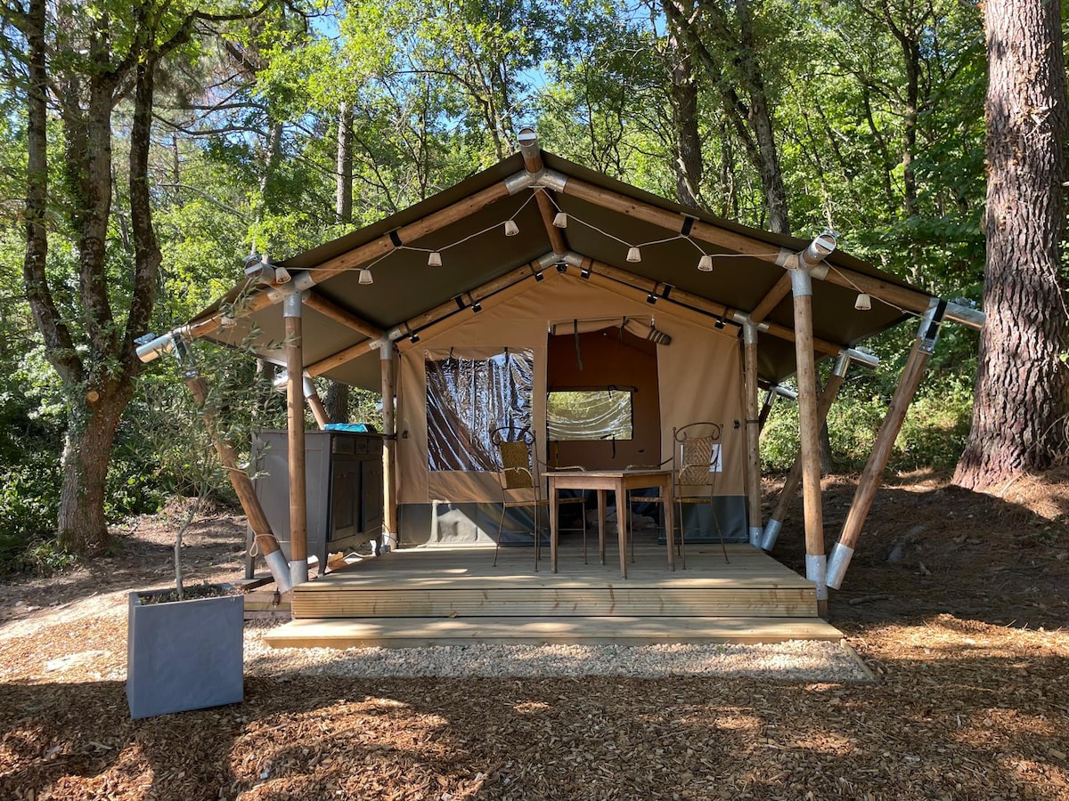 Laissez vous bercer par les sons de la nature dans ce logement unique... A quelques mètres de la forêt, proche de la sortie d'autoroute A11, nous vous accueillons sur notre terrain dans des tentes décorées avec goût.. Equipées de véritable matelas, elles allient confort et respect de la nature. Un espace tente/douche, ainsi qu'un toilette sèche sont disponible. Vous pourrez garer vos voitures sur le terrain en toute sécurité. Possibilité panier petit déjeuner en sus(café, viennoiseries, pain..)