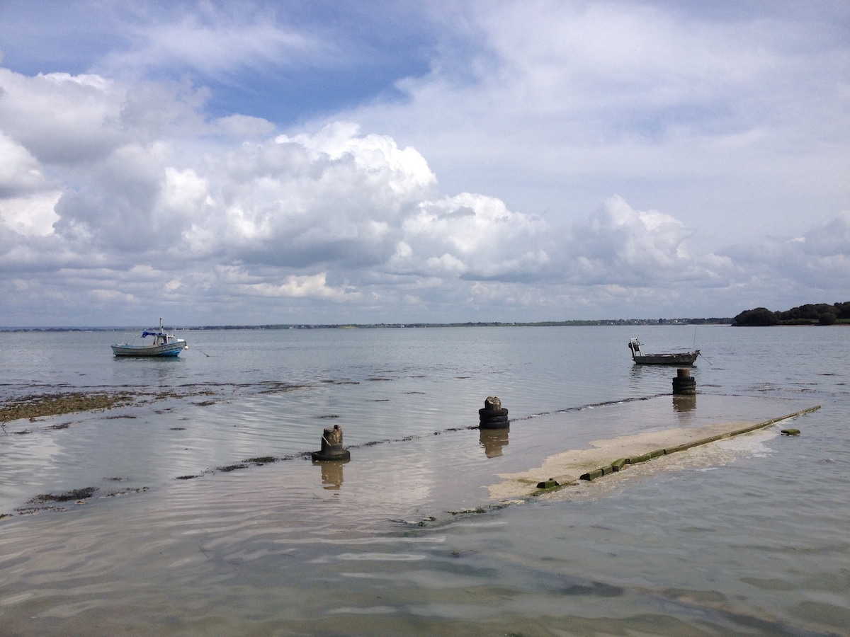 Charmant logement avec sa petite terrasse où vous profiterez d'un petit déjeuner face au soleil levant et d'une vue sur le Golfe. Vous n'aurez que quelques minutes à pied pour aller prendre votre bain de mer et vous régaler dans les crêperies et restaurants très proche. Sans oublier le sentier côtier (tour complet 24 kms) sur lequel vous apprécierez la beauté de cette perle du Golfe.
