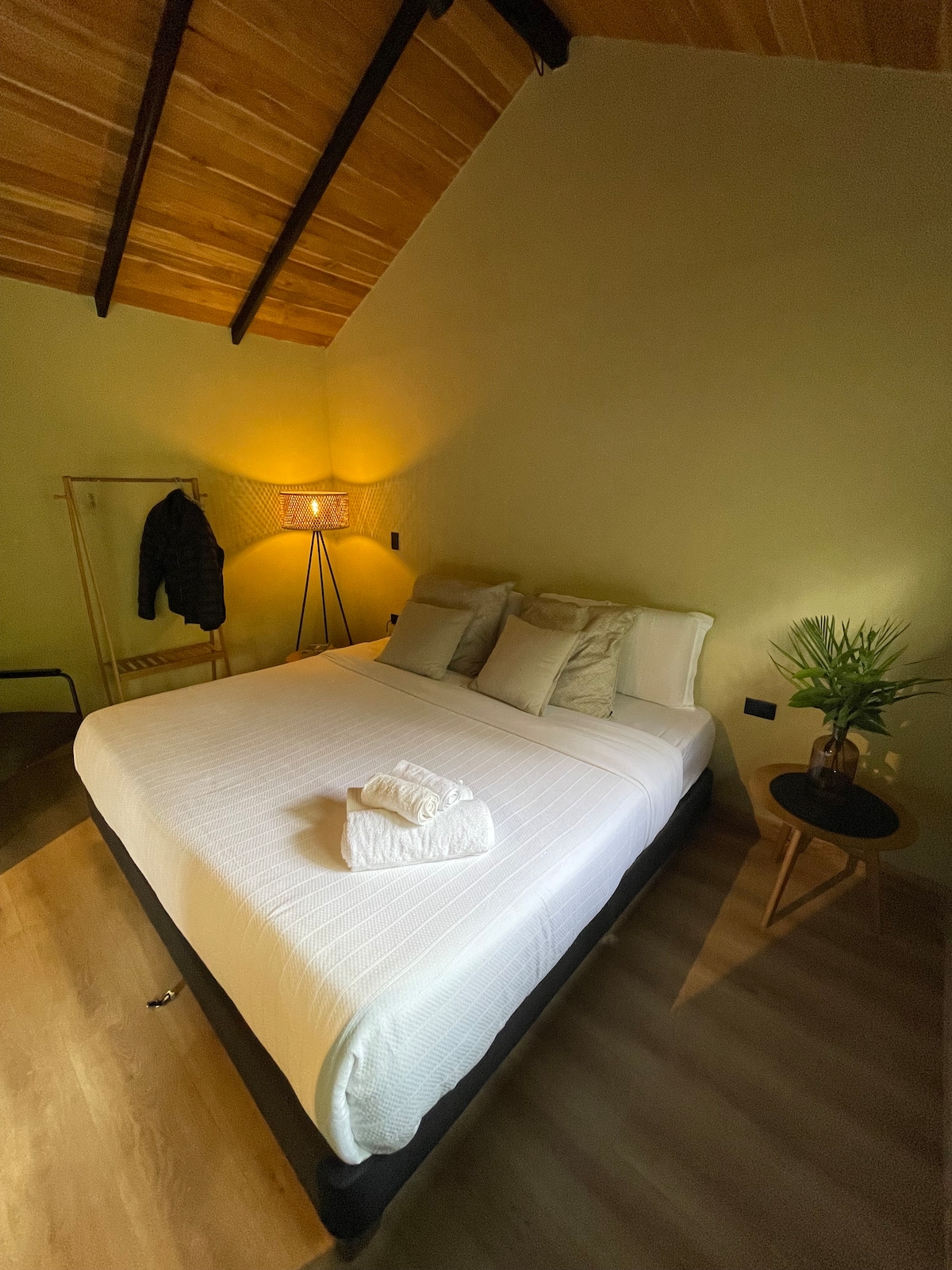 Casa Kyoto es la nueva maravilla de Houses in the Sky, una encantadora cabaña inmersa en una zona rural boscosa de Cundinamarca, rodeada de aire puro, vegetación y el canto de las aves. Este refugio fue creado para quienes buscan tranquilidad, conexión con la naturaleza y comodidad en cada detalle. Despierta con una vista verde impresionante, disfruta del jacuzzi con agua caliente, relájate frente al sonido de la quebrada o comparte una noche mágica con fogata.