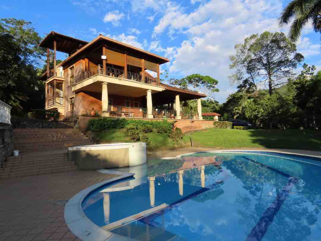 Beautiful country house located just 2 hours from Bogotá in Villeta, Cundinamarca. This house has a pool and jacuzzi, kitchen, 8 bedrooms and 5 bathrooms. It is fully equipped for 20 people, ideal for large groups and families, it is located within the Finca Panorama, a few minutes from the main park, which guarantees the best of both worlds; privacy and proximity to everything you need.