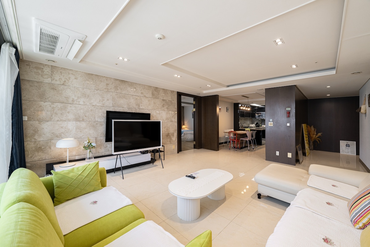 【釜山站5分钟】#海景#家庭-124平方米|最多9人|4张床|炊事+洗衣O/行李寄存+免费停车