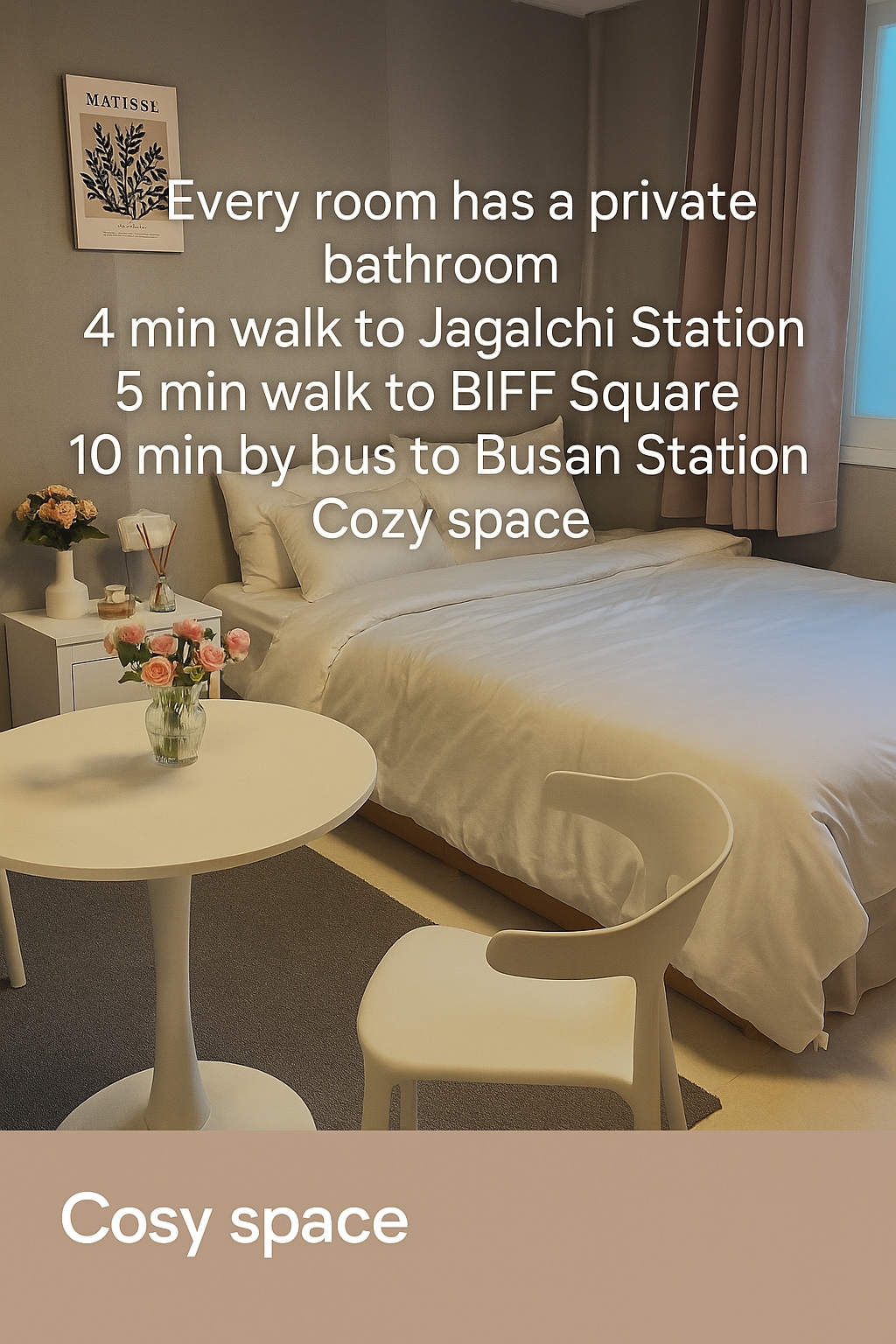 😆🐷👍. 3박 이상 5% 할인.(에어비앤비 단독 혜택) 관광 최고의 위치, 호텔의 편안함과 호스트의 다정함을 가지세요. 😆1. Perpect location. 2분 거리: 자갈치역 6번 출구 . 주요관광지를 모두 걸어서 다닐 수 있습니다. 🐷2. 먹는 것을 사랑하고 여행하는 것을 좋아하는 호스트. 👍3. 40년 넘게 부산을 살아온 지역 전문가가 호스트입니다.