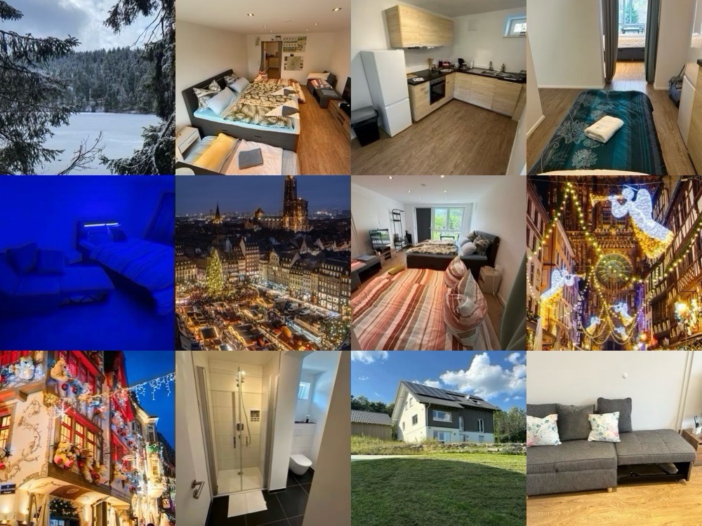 Book your Strasbourg Christmas Market group stay today! Sleeps up to 9 • Save big with our affordable accommodation only 40 minutes (39 km) from the enchanting Strasbourg Christmas Market. Brand new apartment overlooking the Black Forest! Fully renovated & furnished with full kitchen. 30 min to Baden-Baden baths, 40 min to Europa-Park & Strasbourg, Grand king boxspring (180x200) with blue lighting & blackout blinds. Plus pullout and air mattresses.