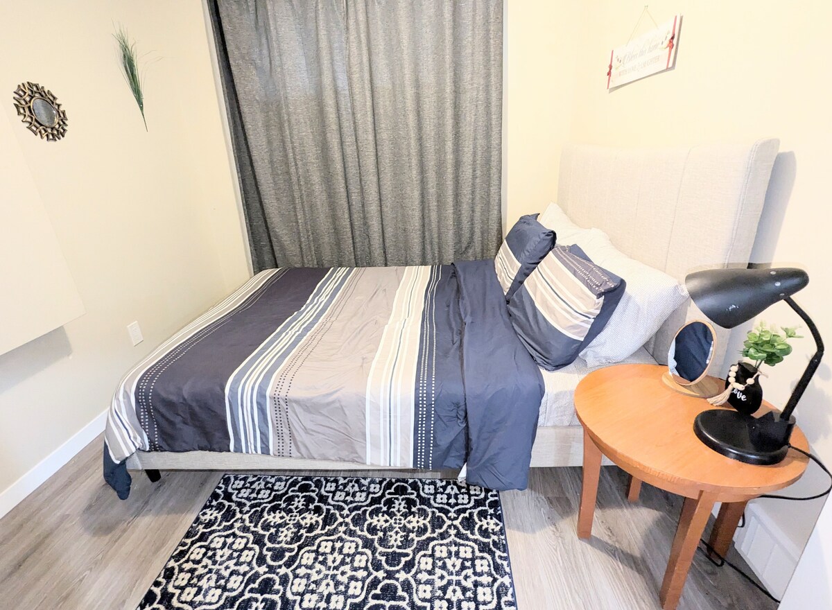 Enjoy the comfort & convenience that this cozy basement suite offers in the quiet Greens area. Make some memories at this unique & family-friendly villa. It is 5 mins drive from Costco & 8 mins drive from Walmart & Superstore. This super clean space has comfortable queen-sized bed & free parking. It has high speed internet 325 Mbps Wifi, 40'' smart TV including prime video and netflix access. Kitchenette has essentials such as microwave oven, refrigerator, hot water jug, coffee maker, toaster.