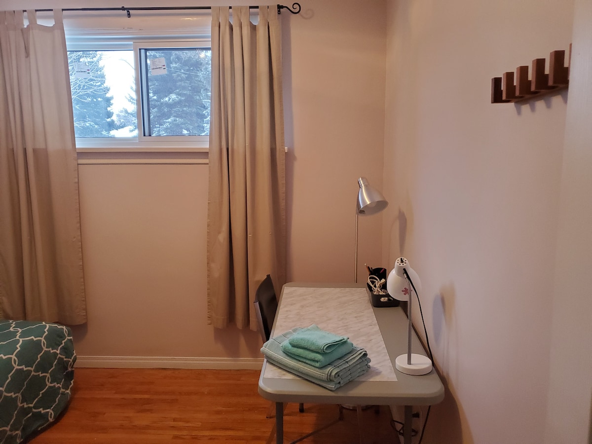 Located in a quiet and safe neighbourhood on Saskatoon's eastside. Close to grocery stores, convenience stores, schools, pharmacies, a public library and many beautiful parks! Dedicated study area with common shared spaces (kitchen, dining area, living room, bathroom) with other females.