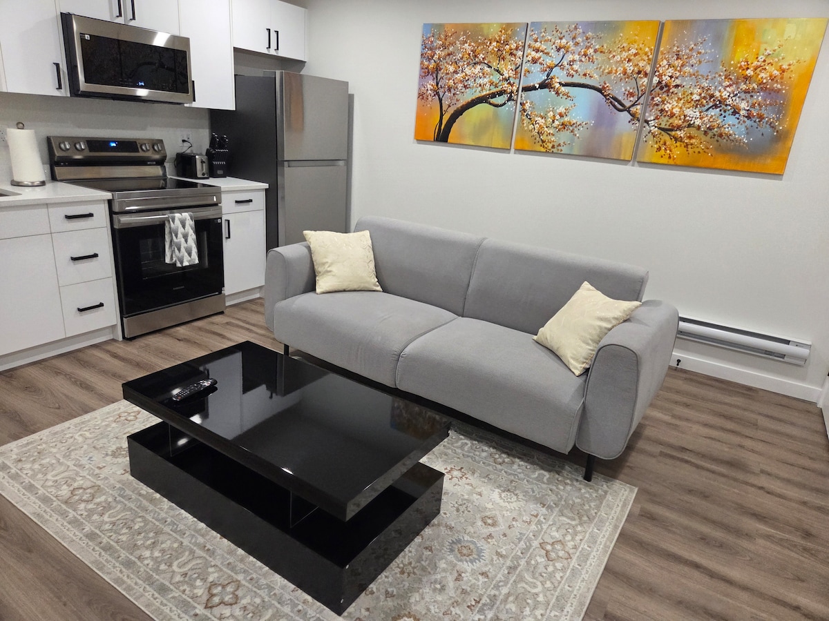 Welcome to our charming basement suite, perfect for travelers, couples, or professionals. Enjoy a private entrance, a cozy bedroom, a full bathroom, a furnished living room, and a fully equipped kitchen for your convenience. On-site laundry with a washer and dryer adds extra ease. Located just 5 minutes from the city airport, this space offers comfort, privacy, and easy access to local attractions. Book your stay today for a peaceful and convenient retreat—we look forward to hosting you!