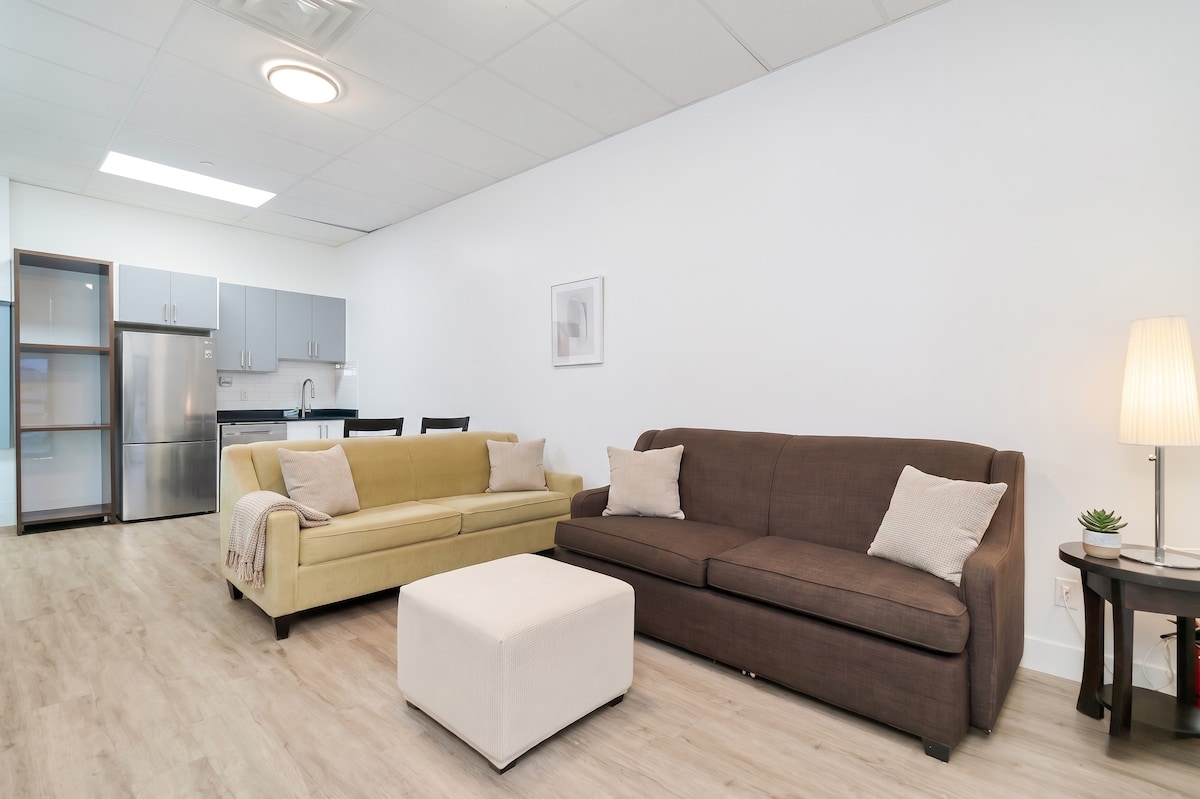 Enjoy a stylish stay at this centrally located, fully self-contained loft-style studio. Open-concept layout, it offers a full kitchen, in-suite washer/dryer, and a cozy private patio area. Sleeps up to 4 guests with a queen bed and queen sofa bed.The studio is completely private with its own separate entrance. Steps from local restaurants, coffee shops, boutiques, groceries, a bookstore, the hospital, and the charming District 1881 neighborhood — everything within walking distance.