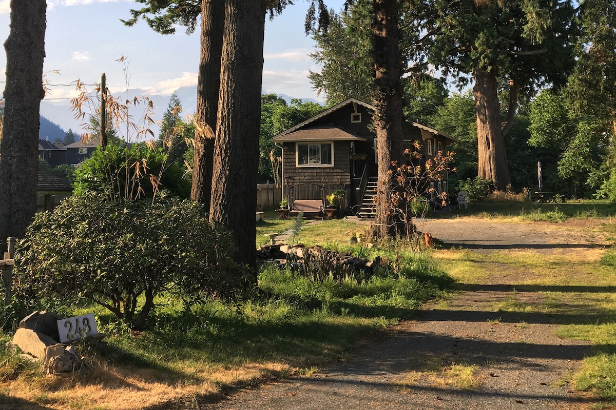 Affordable studio 300 sq foot cottage. 3 minute walk to the Chilliwack river. Sleeps up to 4. Great for couples or a couple with 1-2 children. Ideal for outdoor lovers. Cottage in scenic country location-10 minutes (10-12 km) to town amenities. Friendly hosts, affordable, convenient access to the outdoors. Vehicle required. Dogs welcome (please mention on booking). No cats. Hiking, rafting, waterslides, fishing, dirt-biking, sight-seeing nearby. Mountain views. Perfect quiet spot to relax!