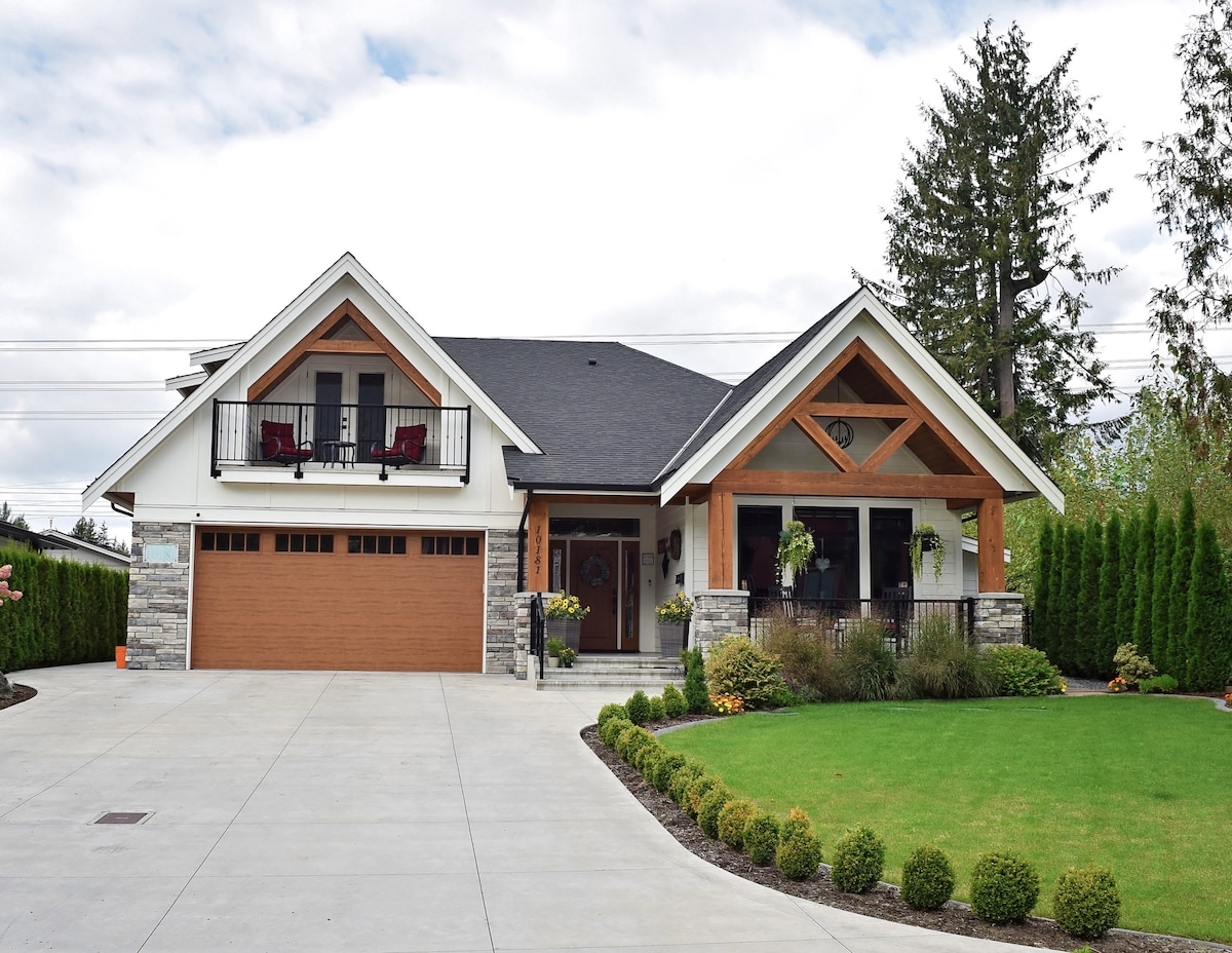 Licensed Contemporary 2200 SQ FT 3 bedroom lower level suite atop Chilliwack Mountain. Beside 36-acre Hillkeep Regional Park. Enjoy nature and scenic view at your doorstep, Photographer's dream. Walking trails meander through natural woodland & lookout platform cantilevered over sweeping views of Cascade Mountains & valley floor below. Close to attractions; Charter fishing Fraser River, Vedder River, Cultus Lake, Harrison Lake, Golfing, Abbotsford International Airport and much more.