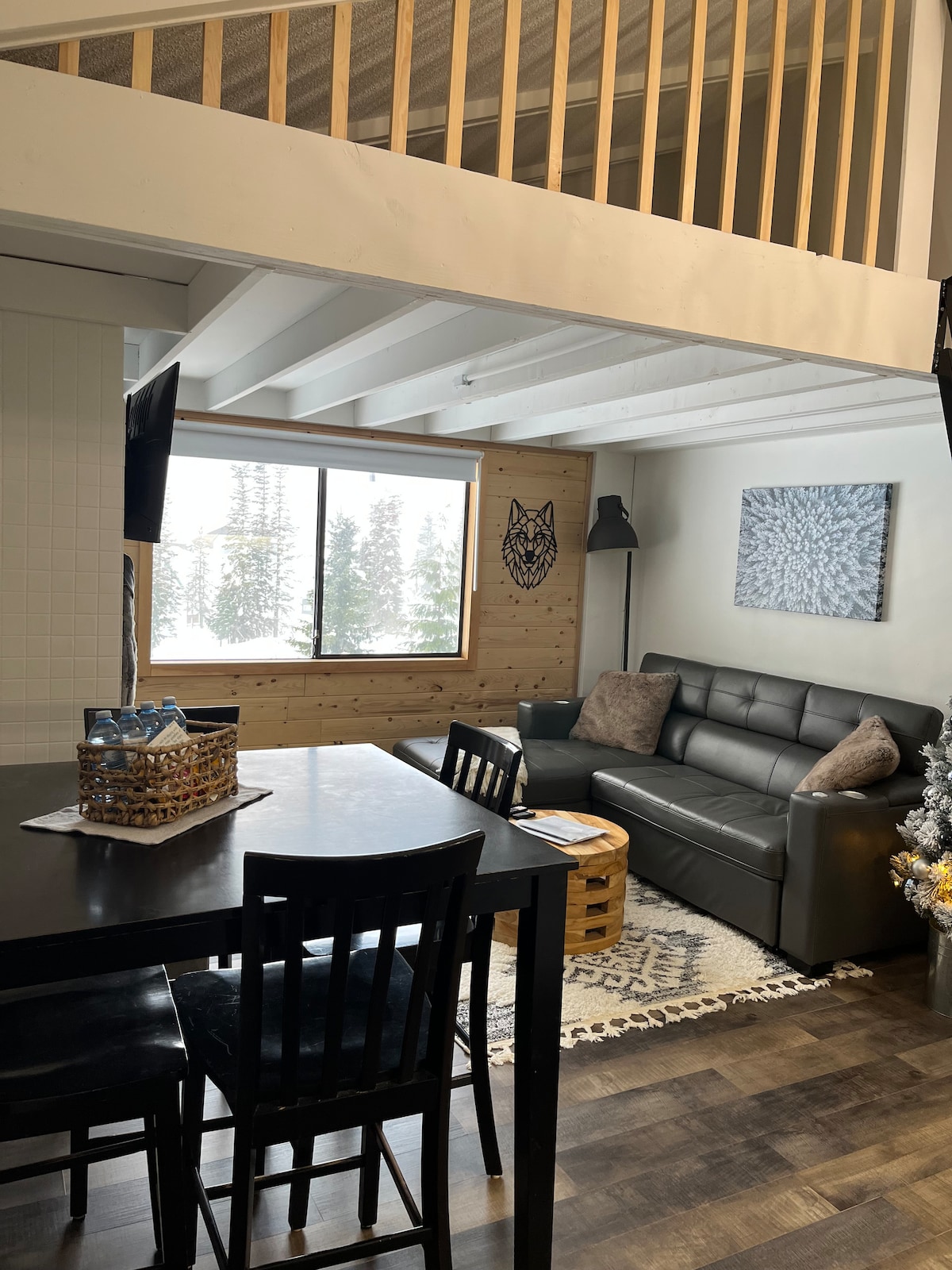 Enjoy a stylish experience at this centrally located place. Sleeps 4 comfortable ( queen size bed, one queen fold out sofa, twin double air mattress) 55inch smart TV/Free Wifi/Tv Box (all sports-movies-netflix),bluetooth soundbar(living room & bathroom),boardgames, wood burning fire place,BBQ.. Ski in Ski Out/ Pub/Restaurant within walking distance , beautiful hikes, mountain biking, ATV, great views and lakes near by, pool(summer season)/hot tub/sauna (all yr round),amenity room and games room