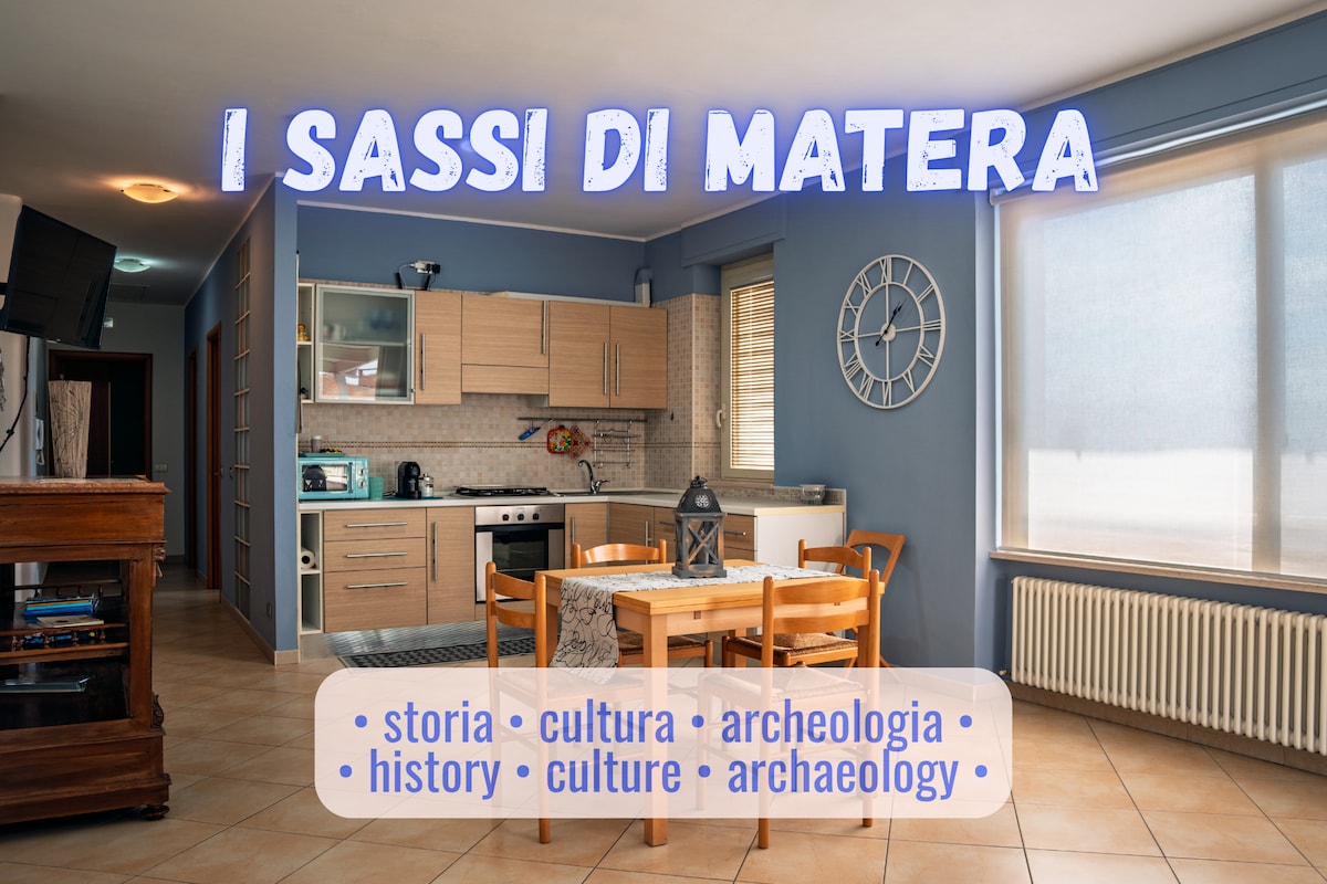 "SHORT TERM RENTAL" formula. Nice apartment of about 50 mq. in the historic center / Sassi, on the second floor of an ancient building, in the upper part of the Sasso, easily reachable on foot and by car, well furnished and comfortable, with windows in all rooms (it is not a small detail, given the humidity that characterizes most of the houses / caves located in the Sassi, often without natural ventilation) with a beautiful view from the living room (as in the photo) on the Sasso Caveoso