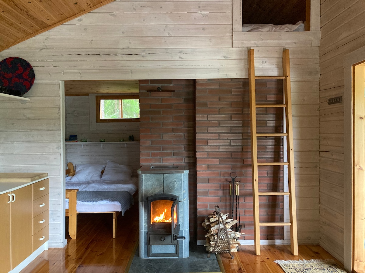 25 m2:n merenrantamökki rentoutumiseen. Tie perille, sähkö, ilmalämpöpumppu, televisio, Wi-fi, bluetooth-kaiutin, puusauna, takka, jossa paistinuuni, kahvin- ja teenkeitin, kaasu-, sähkö- ja hiiligrilli sekä nuotiopaikka, sähköinen keittolevy, jääkaappi. Juoma- ja pesuveden tuon säiliöissä mökille. Biolanin ulkohuussi. Hyvät ulkoilumaastot. Puusauna, jossa pesumahdollisuus. Ja kuten tuolla edellä lukee, ei vesijohtoa eikä suihkua. Sänky on VAIN 120 cm leveä.