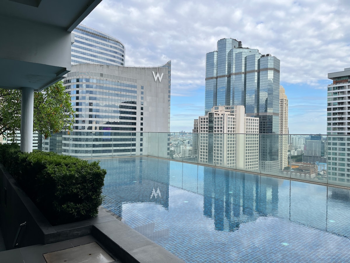 10/ 市区核心 BTS Asoke Phrom Phong Sukhumvit舒适高层公寓天空泳池