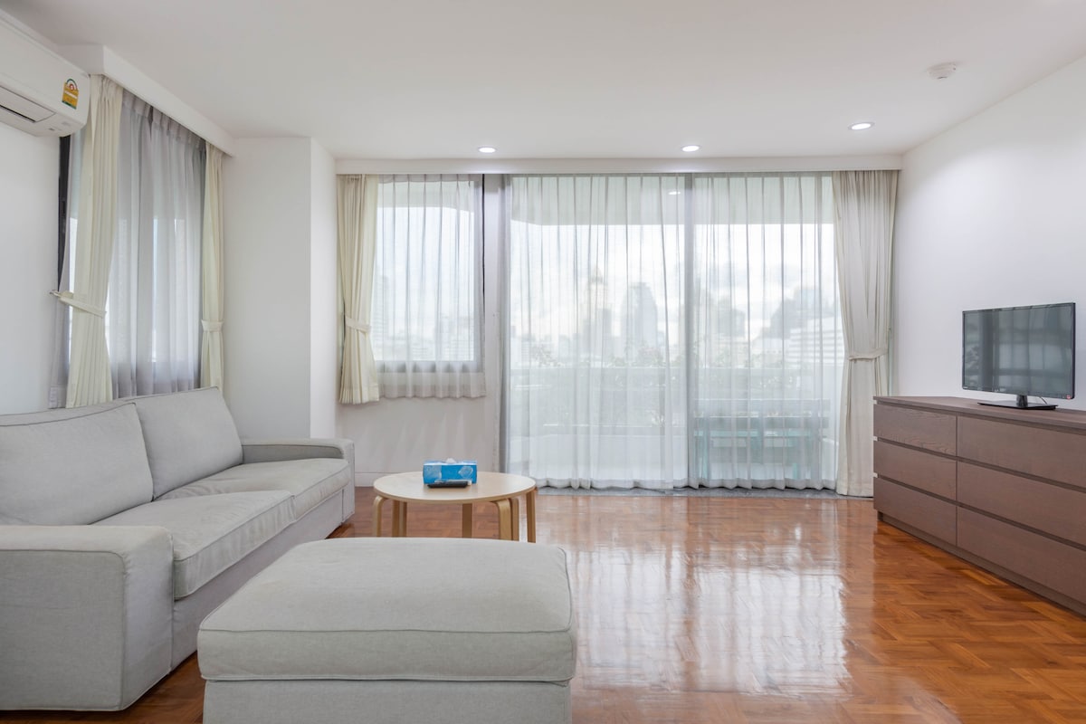This peaceful and centrally-located place offers : • 1-2 stars alike hotel/apartment • 650m to BTS Ploenchit exit4, 7-9 mins walk , ideal for traveller • Very good value to your $$!! Family SUITE @ Ploenchit • 484 sqft (45 sqm) 2BR, 4 px, good for family & friends • “VERY" walkable • Fully equipped, kitchen with appliances • Safe area • Wifi 180 Mbps • In-unit Washing Machine • Coin Washers & Dryers in the Building Laundry Room, 8th Fl. • All rooms are air-con • 24hr guard/check in