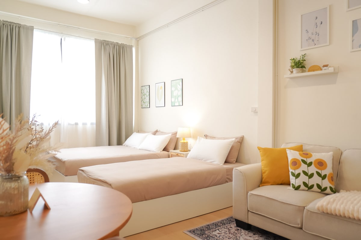 A compact and budget room for 4 on the 4th fl (*NO LIFT*) of a townhouse located in the HEART OF BANGKOK. Only 400 meters to BTS Phayathai and Ratchathewi, getting around is super easy. Surrounded by local shops, restaurants and convenient stores, you will never have to worry about food. Wanna go shopping? Pratunam market, Siam Paragon, Siam Square, MBK Center, Centralworld and Big C Ratchadamri are only 1-2 BTS stops away or 10-15 mins leisurely walk, what a shopaholic's dream comes true.