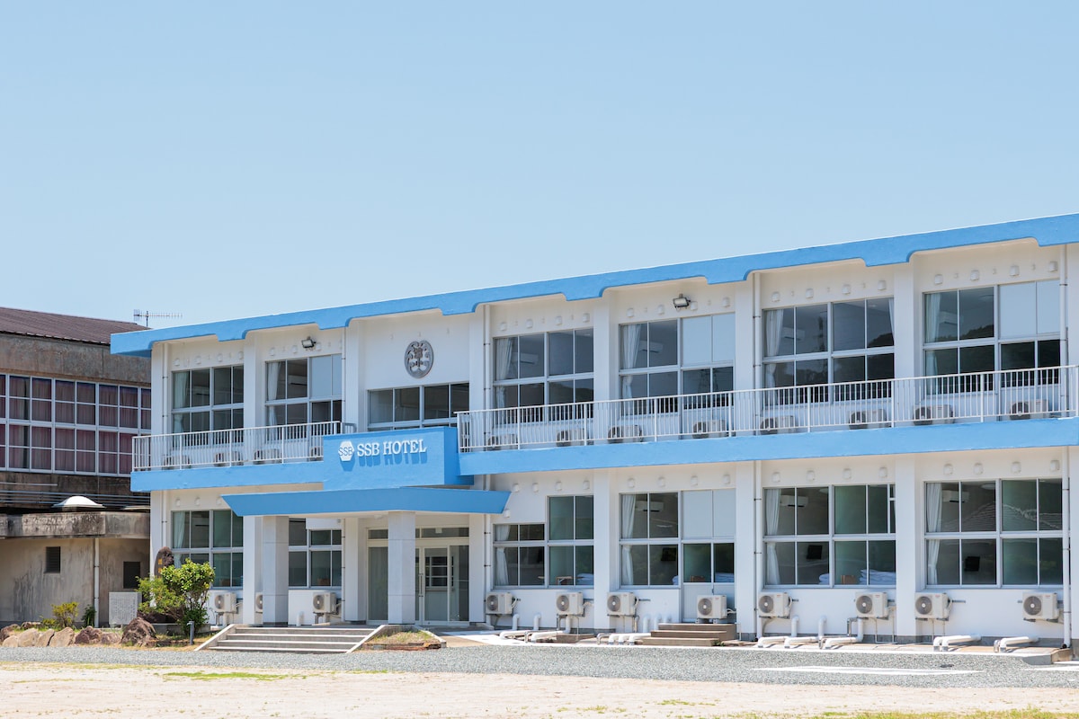 SSB HOTEL滄浪は、旧小学校をリノベーションした静かな1泊~長期滞在まで可能なホテルです。 全室個室で、シャワー・トイレ・洗濯乾燥機・冷蔵庫・高速Wi-Fiを完備。 観光、出張や工事関係のお客様が快適に過ごせる設備を揃えています。 当ホテルは川内原発や久見崎みらいゾーンなど主要工事エリアへのアクセスが良く、早朝出発や長時間勤務にも対応した自由な滞在が可能です。 敷地は広く駐車場も十分に確保され、トラックやバスなどの大型車両を可能です。 館内にはラウンジや電子レンジ、飲料自販機を設置。 長期滞在でもストレスなく生活できるよう設計しています。 1日1組限定の大人数で利用できる最大8名のグループルームもあり、同じ現場のチーム滞在にも便利です。 (他のお客様と相部屋になることはございません) 個室の快適さと学校建物の懐かしい雰囲気をぜひお楽しみください。