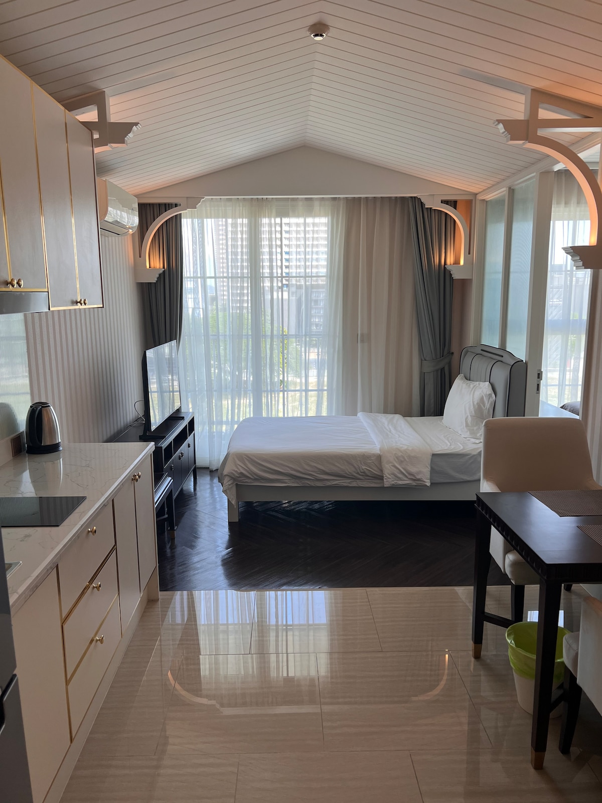 This is perfect place for holiday, you can walk to beach directly, enjoy large water park and many facilities. Room - 1 king size bed (6 ft.) - built in kitchen with hood & electronic cooker - refrigerator, microwave, kettle Facilities - Swimming pools with water park style with 2 sliders - artificial wave (Weekend only) - Indoor therapy pools - Huge Gym, Yoga room, Boxing room - Game room - Kids club - Beach access