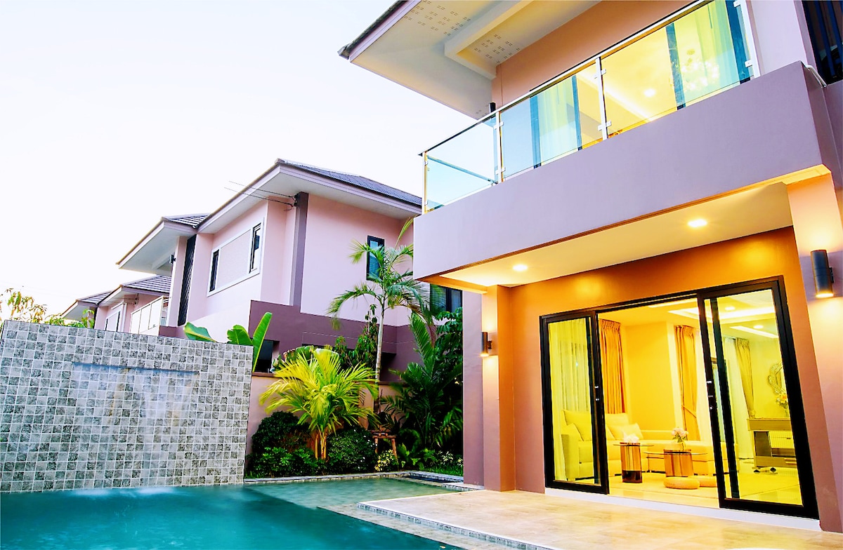 💗「新房特惠」3晚以上有长租折扣哦; 💰「服务团队」:管家,保姆,车队全服务团队。早餐/每日清洁/接送机/包车等可选付费服务; 🍷「增值服务」:摩托车和汽车租赁、上门按摩,门票,旅游线路等付费服务; 💒「房源介绍」: 美丽的别墅名字为云韵别墅(CloudYu Pool Villa),占地300平米的2层建筑,拥有4间独立卧室和卫生间、客厅、餐厅、厨房;庭院内有28平米私人泳池,花园和户外用餐区; 位置位于芭堤雅市怀亚区(HuayYai Moo7),距离素坤逸路300米(Sukhumvit Road),距离中天海滩车程10分钟(Jomtien beach),; 🏪「便利生活」 门口有711和Lotus生鲜便利店24小时营业、中国餐馆超市/本地餐馆/夜市;日常出行会帮助预定出租车; ⛰️「附近景点」: 5分钟网红啤酒咖啡吧、粉红沙滩、打卡餐厅 15分钟车程:中天海滩、水上市场 、射击场、老虎乐园、海底世界、水上乐园、七珍佛山、东芭乐园; 30分钟车程:T21商场、唐人街、风月步行街,大象村、芭堤雅码头、真理寺