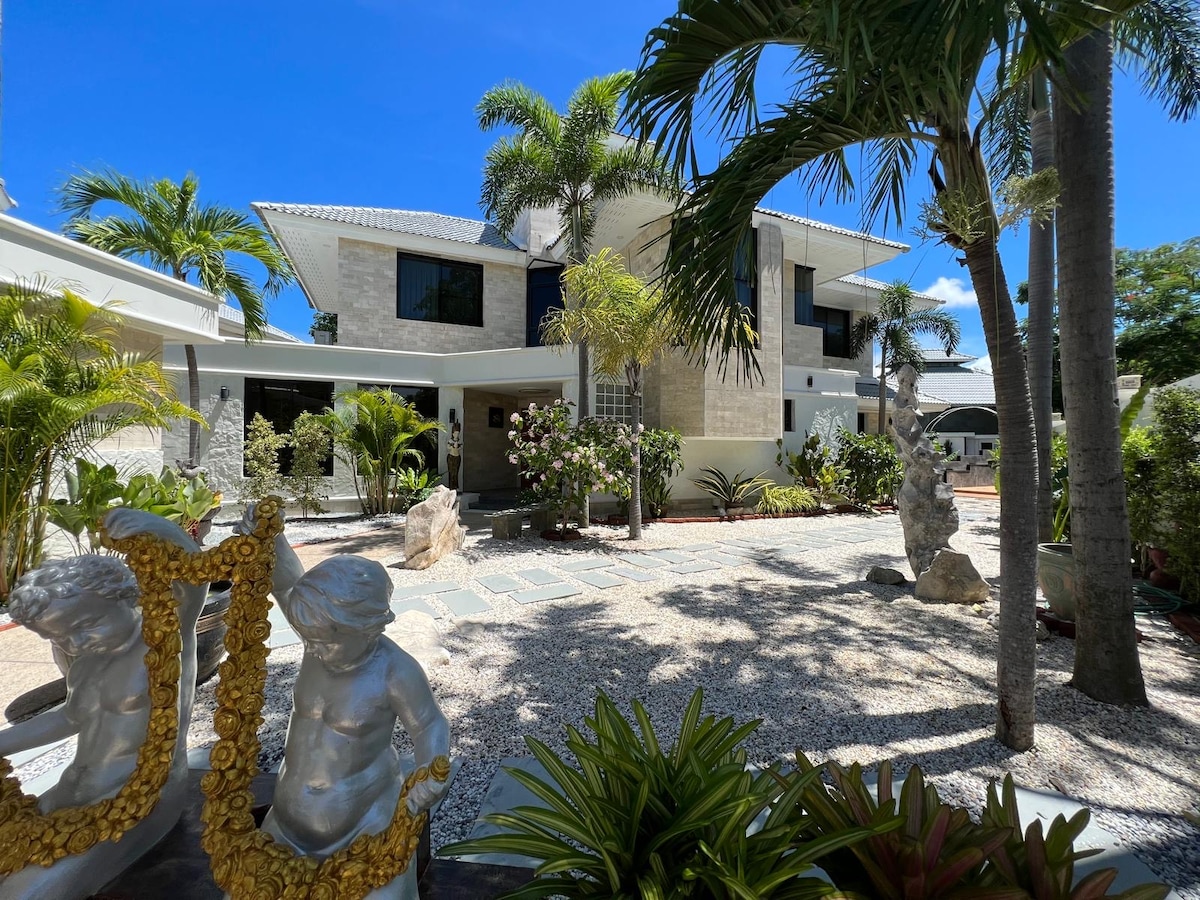 Luxury villa with a private swimming pool surrounded by a tropical garden,a few minutes from the quiet and clean beach of Bang Saray,a few minutes away watter park Cartoon Network Pattaya,tropical garden Nong Nooch,recreation area Silver Lake.