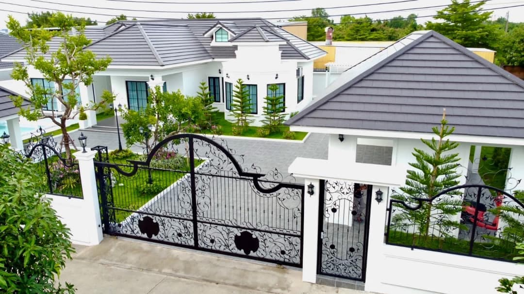 在🏠 这座别墅有916平米,配备了4个卧室和4个卫生间,空间非常宽敞。走进来,宽敞明亮的客厅瞬间抓住你的心,高档的皮质沙发和柔软的地毯,简直就是度假中的舒适天堂~ 🛋️ 新装KTV 🍳 我最喜欢的是开放式厨房,现代化厨具应有尽有,喜欢做饭的小伙伴一定能大展身手!卧室里的大床真的超舒服,每晚都能睡个好觉,床品也很精致👌 🏊♀️ 别墅的亮点当然是私人泳池!无论是游泳还是晒太阳,都是一大享受,尤其在阳光下,池水波光粼粼,美到不行~ 🚗 出行也很方便!离Sukhumvit路只要3分钟车程,去Satit学校和中天海滩也都在10分钟车程内,既方便又安静。 🌴 如果你想要一个既有私密性又便利的度假体验,来我这座小别墅准没错~ 芭提雅的美好生活等你来发现!这处独具特色、适合家庭入住的房源中留下美好回忆。
