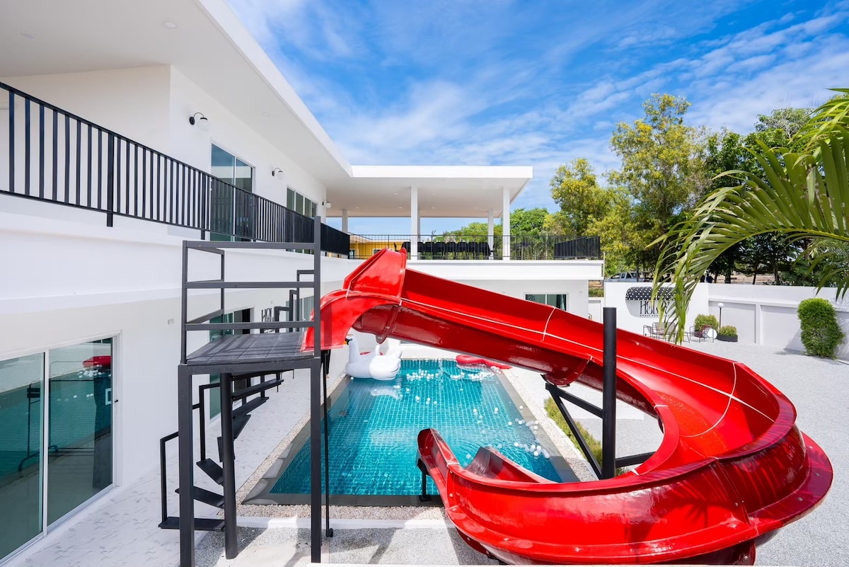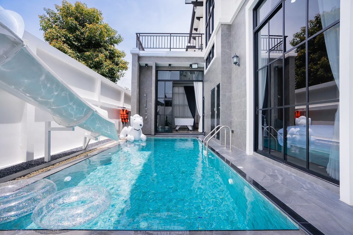 💗「新房特惠」3晚以上有长租折扣哦; 💰「服务团队」:管家,保姆,车队全服务团队。早餐/每日清洁/接送机/包车等可选付费服务; 🍷「增值服务」:摩托车和汽车租赁、上门按摩,门票,旅游线路等付费服务; 💒「房源介绍」: 美丽的别墅名字为云韵别墅(CloudYu Pool Villa),占地300平米的2层建筑,拥有4间独立卧室和卫生间、客厅、餐厅、厨房;庭院内有28平米私人泳池,花园和户外用餐区; 位置位于芭堤雅市怀亚区(HuayYai Moo7),距离素坤逸路300米(Sukhumvit Road),距离中天海滩车程10分钟(Jomtien beach),; 🏪「便利生活」 门口有711和Lotus生鲜便利店24小时营业、中国餐馆超市/本地餐馆/夜市;日常出行会帮助预定出租车; ⛰️「附近景点」: 5分钟网红啤酒咖啡吧、粉红沙滩、打卡餐厅 15分钟车程:中天海滩、水上市场 、射击场、老虎乐园、海底世界、水上乐园、七珍佛山、东芭乐园; 30分钟车程:T21商场、唐人街、风月步行街,大象村、芭堤雅码头、真理寺