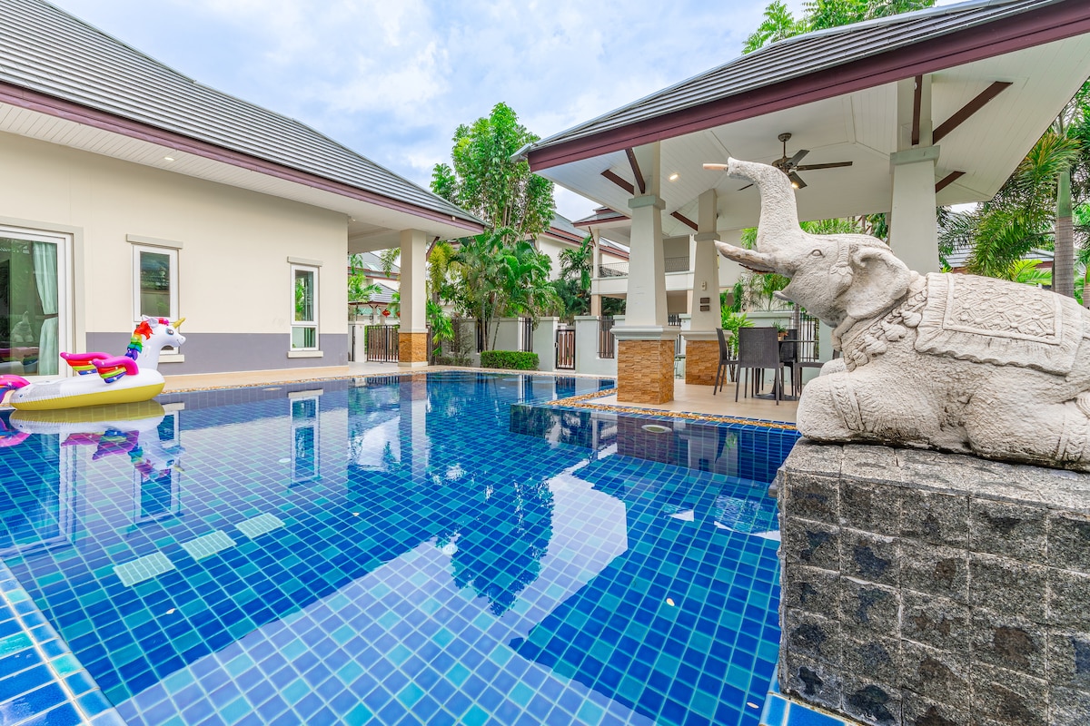 奢华度假体验 | 近海静谧之所 | 豪华泰式风格 沉浸在芭提雅的热带风情之中,尊享顶级豪华泰式风格别墅。距海滩仅300米,小区配备游艇码头。让您随时拥抱海风与碧波,尽享悠然度假生活。 🏡 别墅亮点 • 3卧4卫 • 私密尊享 • 每间卧室均设独立卫浴,确保宾客的私密与尊贵体验,适合家庭聚会、高端度假或好友欢聚。 • 奢华泰式风格 • 匠心设计 • 全芭提雅最豪华泰式装修,甄选高品质装饰材料,营造出最具泰国特色的居住氛围。 • 宽奢客厅 • 共享惬意时光 • 超近海滩• 距离那中天海滩只有300米 • 超大客厅设计,开阔通透,是家人朋友欢聚的理想场所,温馨而不失尊贵。 • 私家泳池 • 休闲度假体验 • 在清澈的泳池中放松身心,静赏璀璨星空,感受真正的度假惬意。 📍 便捷生活配套 & 周边景点 • 核心生活圈:距当地菜市场仅1公里,日常采购便捷无忧,周边更有各类超市、餐厅、网红餐厅等完善生活设施。 • 热门景点环绕:周边汇聚芭提雅著名旅游景点,尽享海滩风光、人文探索与娱乐休闲的多重乐趣。 • 便捷交通:无论是前往海滩、商场,或是探索当地特色,都能轻松抵达。