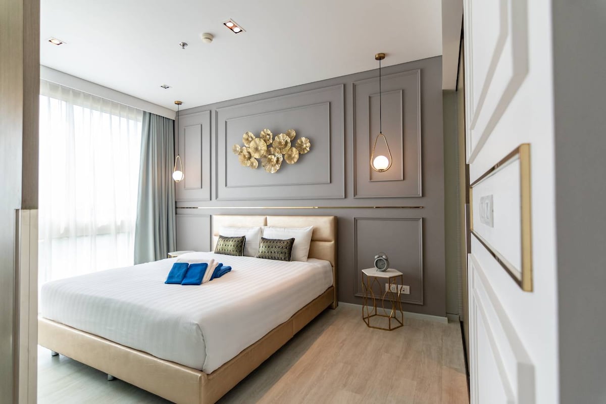 This is perfect place for holiday, you can walk to beach directly, enjoy large water park and many facilities. Room - 1 king size bed (6 ft.) - built in kitchen with hood & electronic cooker - refrigerator, microwave, kettle Facilities - Swimming pools with water park style with 2 sliders - artificial wave (Weekend only) - Indoor therapy pools - Huge Gym, Yoga room, Boxing room - Game room - Kids club - Beach access