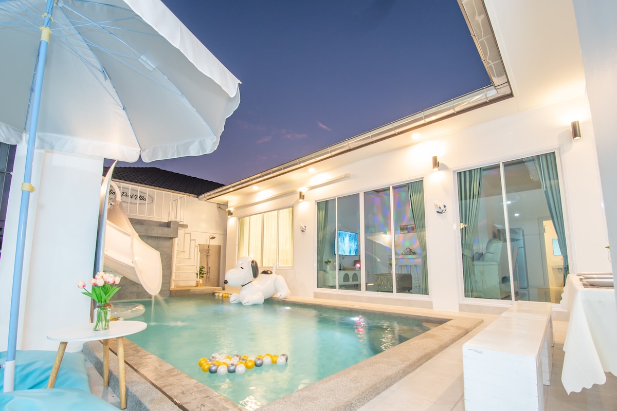 Situated near the beach, this ultimate resort house ensures a memorable trip to Pattaya that you'll cherish for years. Conveniently located next to Columbia Pictures Aquaverse (formerly Cartoon Network Waterpark) and just a 20-minute drive to South Pattaya, this luxurious retreat offers an oasis of relaxation with your very own private, shaded swimming pool.